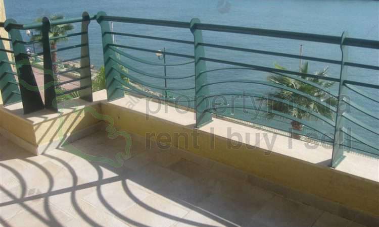 Seafront, luxurious apartment in a stylish block enjoying breath taking sea views from it`s front terrace. Layout consists of a large open plan kitchen/living/dining, two double bedrooms, one single bedroom, bathroom, shower en suite and use of shared roof. Property is very spacious, has use of lift, comes fully equipped including dishwasher and is fully air conditioned. Optional garage available. Worth viewing.