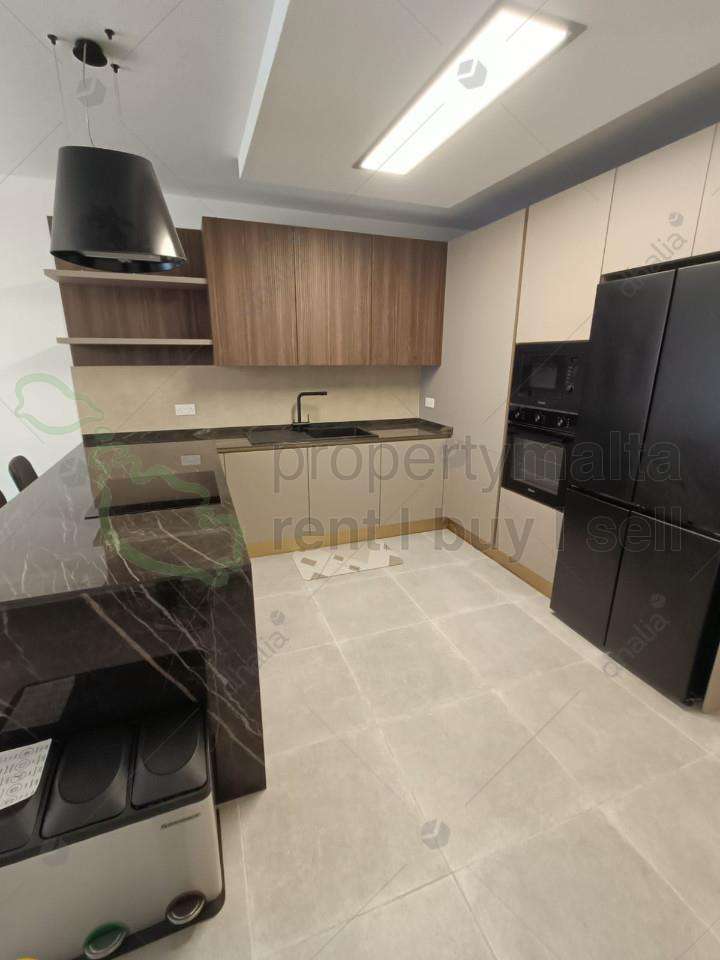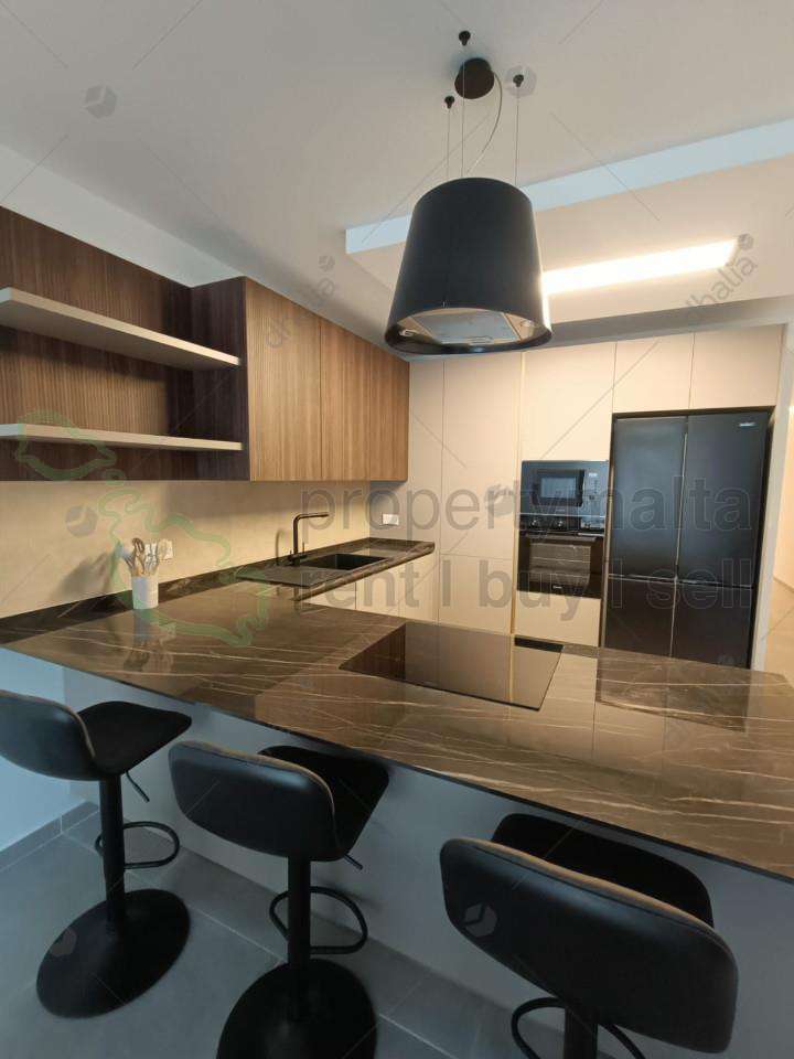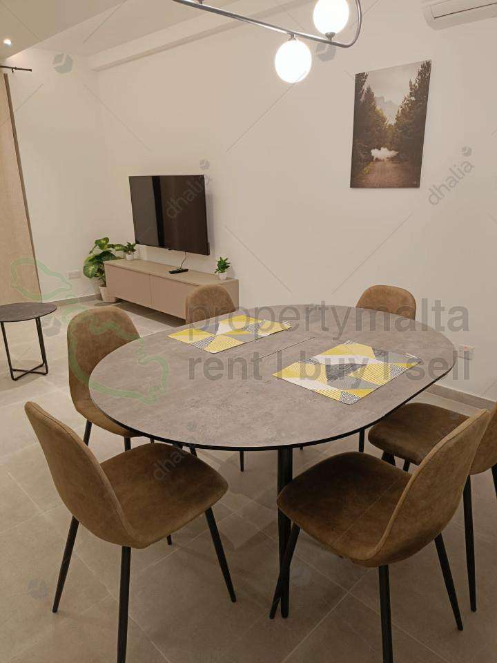 Modern three-bedroom apartment for rent in Mellieha, featuring a spacious open-plan kitchen, dining, and living area ideal for comfortable living. The layout includes three bedrooms, with the main bedroom enjoying its own ensuite, a main bathroom, and a convenient utility room. Fully air-conditioned and equipped with all modern amenities, this stylish property offers a perfect blend of practicality and comfort in one of Malta’s most desirable locations.