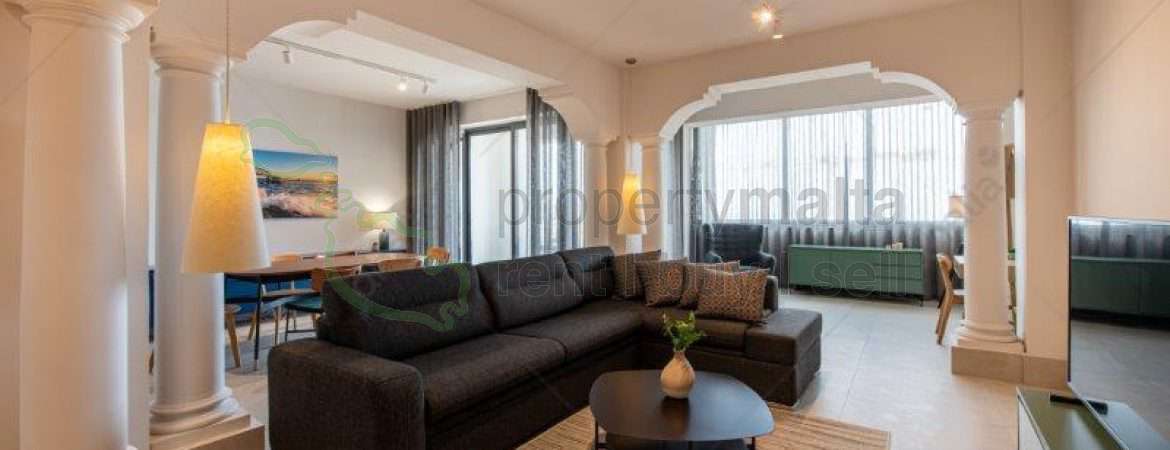 Luxuriously finished three-bedroom apartment in Mellieha, enjoying unobstructed sea views. The property comprises an open-plan kitchen/living/dining area, three double bedrooms, a main with a private bathroom, a guest bathroom, a library room, and a front balcony. Fully equipped and air-conditioned. One car garage is included in the price.