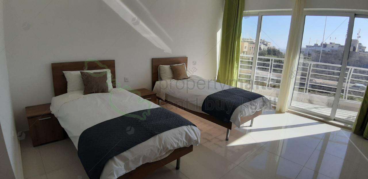 A highly finished three-bedroom apartment ideally located in Mellieha close to all amenities. The property comprises a spacious kitchen/living/dining area leading onto a large balcony that enjoys distant sea views, two double bedrooms (main with shower ensuite), a twin bedroom, and the main bathroom. The apartment also features a boxroom and is fully equipped. A must-see!
