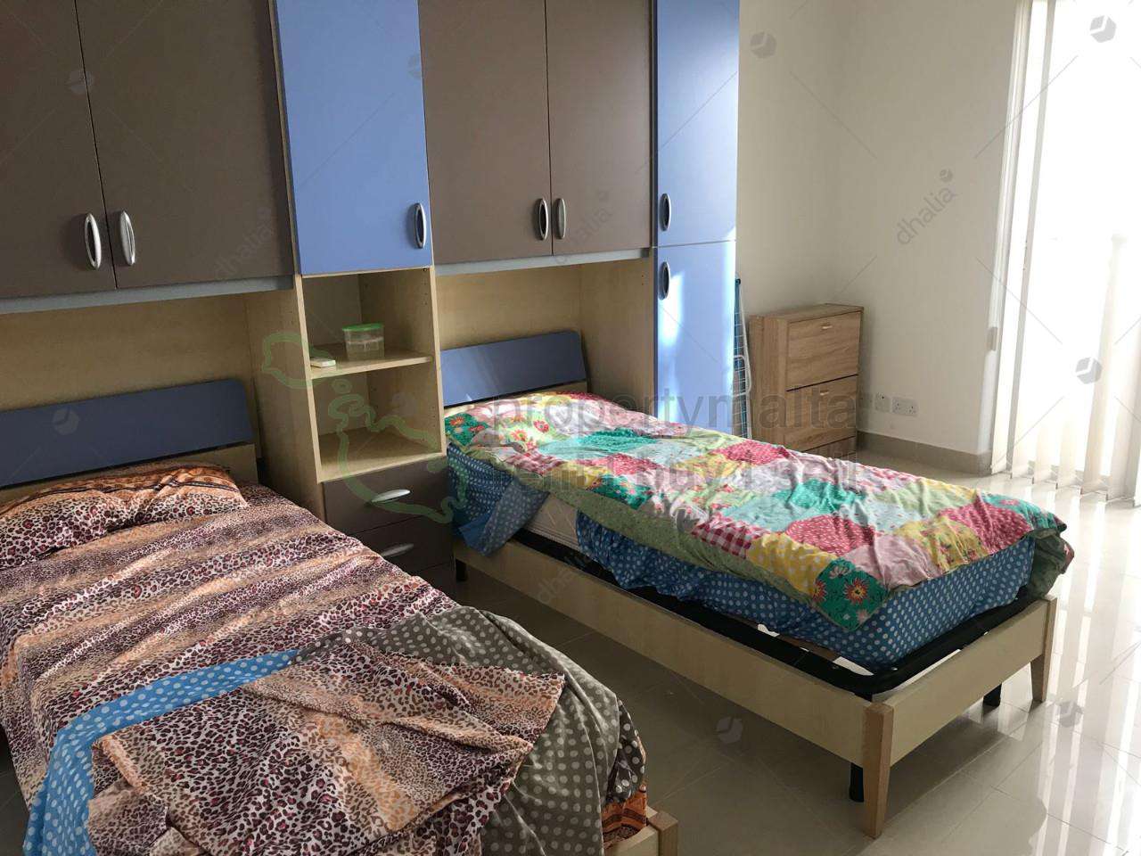 A larger than usual three bedroom apartment located in a quiet residential area on the outskirts of Mosta. This property consists of a living/dining area with a separate kitchen, two double bedrooms and one single bedroom suitable for young children. All main rooms are air conditioned and the property comes with all necessary amenities.