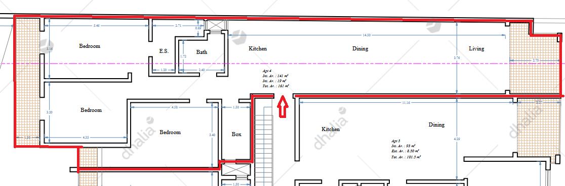A large three bedroom apartment measuring 160 square metres. Layout comprises a large open-plan kitchen/living/dining area of approx 54 square metres leading to a front terrace, main bathroom, a box room, masterbedroom with ensuite, another two double bedrooms and a spacious back balcony. Optional garages available