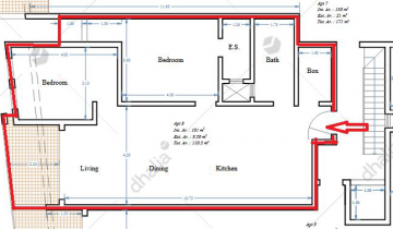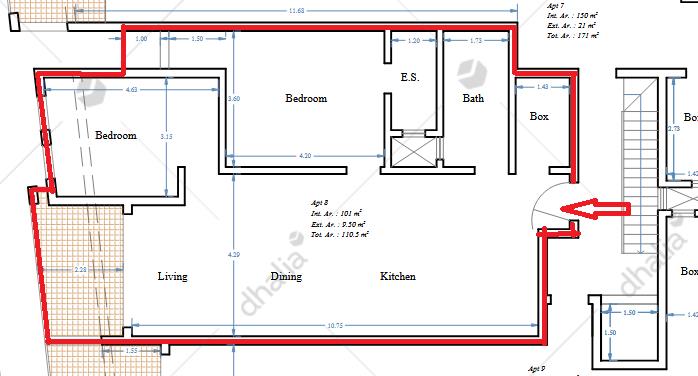 A two bedroom apartment in a squarish layout. Apartment features an open-plan kitchen/living/dining area leading to a front terrace, main bathroom, master bedroom with ensuite, a second bedroom and a small balcony. Optional garages available.