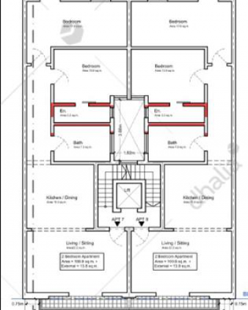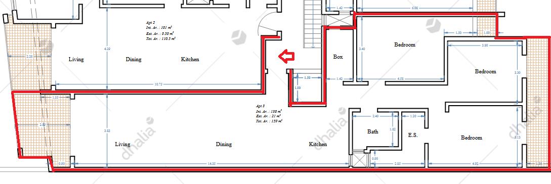 A large three bedroom apartment measuring 159 square metres. Layout comprises a large open-plan kitchen/living/dining area of approx 50 square metres leading to a front terrace, main bathroom, a box room, master bedroom with ensuite, another two double bedrooms and a spacious back balcony. Optional garages available