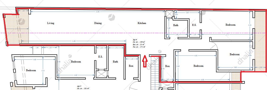 A large three bedroom apartment measuring 171 square metres. Layout comprises a large open-plan kitchen/living/dining area of approx 60 square metres leading to a front terrace, main bathroom, a box room, masterbedroom with ensuite, another two double bedrooms and a spacious back balcony. Optional garages available