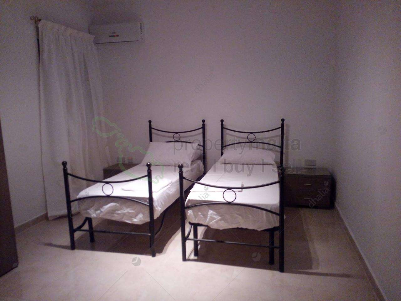 Modern three-bedroom apartment located in a quiet residential area in Mqabba. The property consists of a kitchen/living/dining room with a front balcony, bathroom, two double bedrooms (main with shower ensuite) and a single bedroom with back balcony. Located a few minutes away from the airport. The property is being offered fully equipped and served with lift. Internet is included in the price.