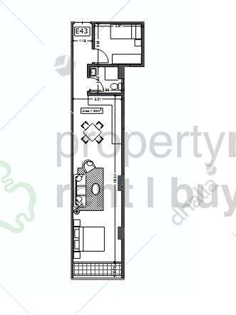 A one-bedroom studio apartment ideal as a rental investment. The layout comprises open plan kitchen/living/dining, a bathroom, a bedroom, and a balcony. Optional car spaces are also available.