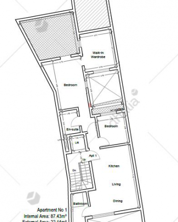 Msida – A brand new development in a quiet/central area. Accommodation comprises a kitchen/living area, dining area, a bathroom, a bedroom, and a master bedroom with an ensuite and a large walk-in closet, as well as a large back terrace – being offered in shell. An optional finishing package is available. Freehold.