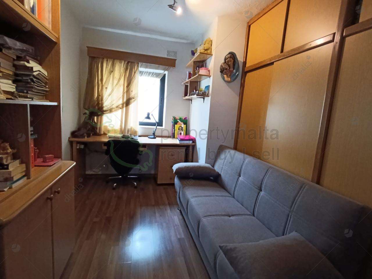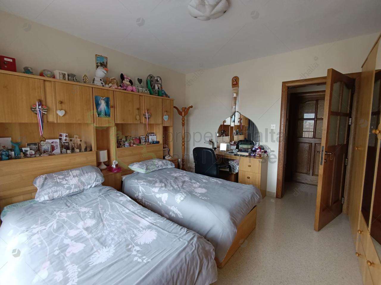 A bright and spacious three-bedroom apartment with an underlying interconnected two-car garage included in the price. The property is being sold freehold and is located in a tranquil area of Mtarfa. A wide terrace surrounds the whole frontage of the property, enjoying views of the town and countryside. Upon entrance, one finds a comfortable kitchen/living/dining area, a main bathroom, a large main bedroom, two sizeable bedrooms, one with storage and ensuite. One also can enjoy the use of roof.
