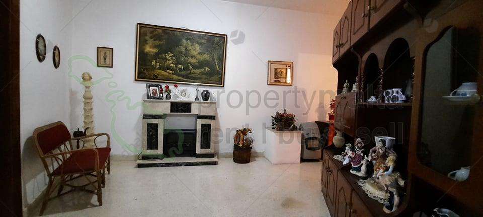 A ground-floor apartment in Paola. The layout consists of a separate lounge, separate dining room, a kitchen/breakfast area, three double bedrooms, the main bathroom, a guest bathroom, a boxroom, and a yard.