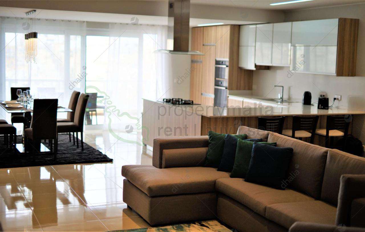 An immaculately finished and furnished seafront apartment in Pieta located close to all amenities and major bus-stops. Layout is in the form of an open plan kitchen/living/dining area leading to a spacious balcony overlooking Msida church and the Marina, three double bedrooms main with back balcony and a shower ensuite, main shower room, laundry room and a study/office. A must see!