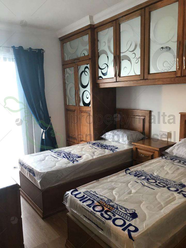 A finished, third-floor apartment served with lift situated on the seafront of Pieta enjoying lovely sea views. The layout consists of a kitchen/living/dining area leading to a front balcony, two twin bedrooms (main with air condition) and a bathroom. This property is fully equipped with all modern day amenities.