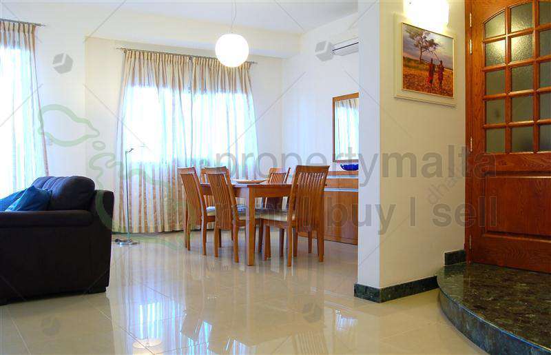 Nicely furnished three-bedroom fully airconditioned apartment in Qawra. The property consists of a separate kitchen, lounge/dining leading to a good size balcony enjoying sea views, shower en suite, bathroom, and a box room.