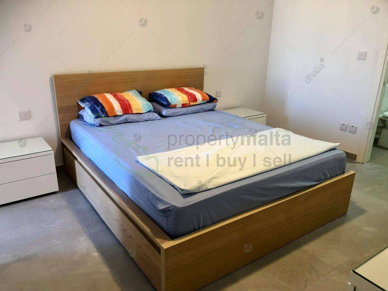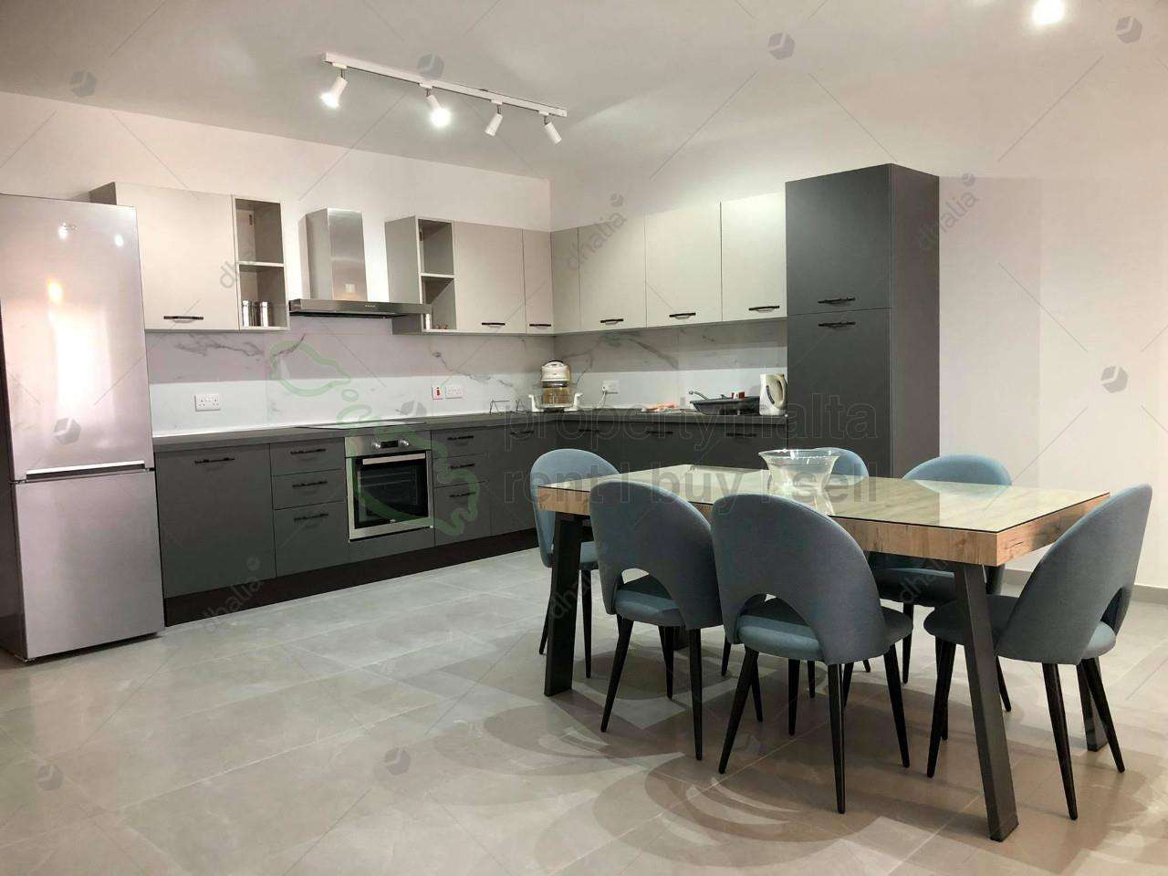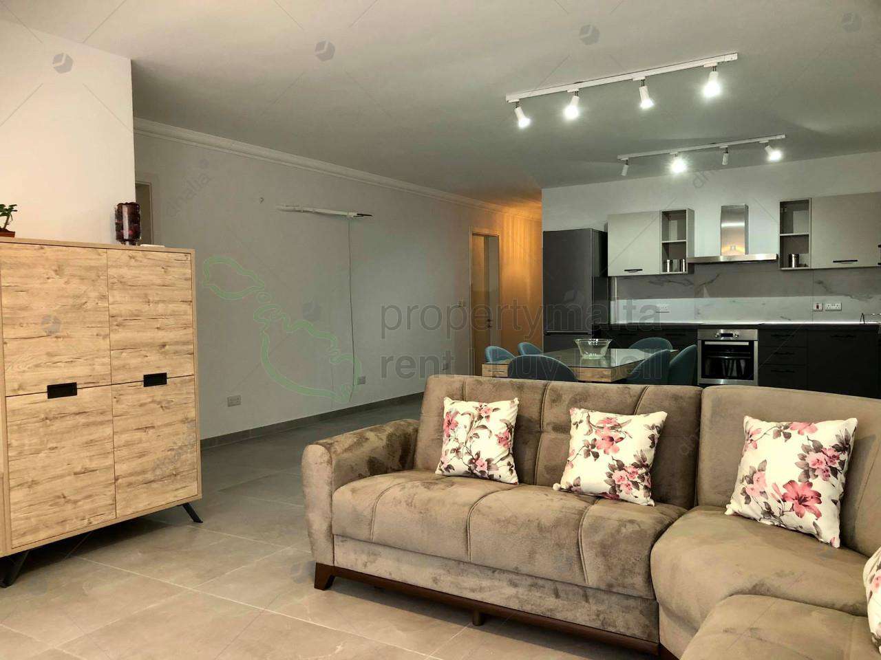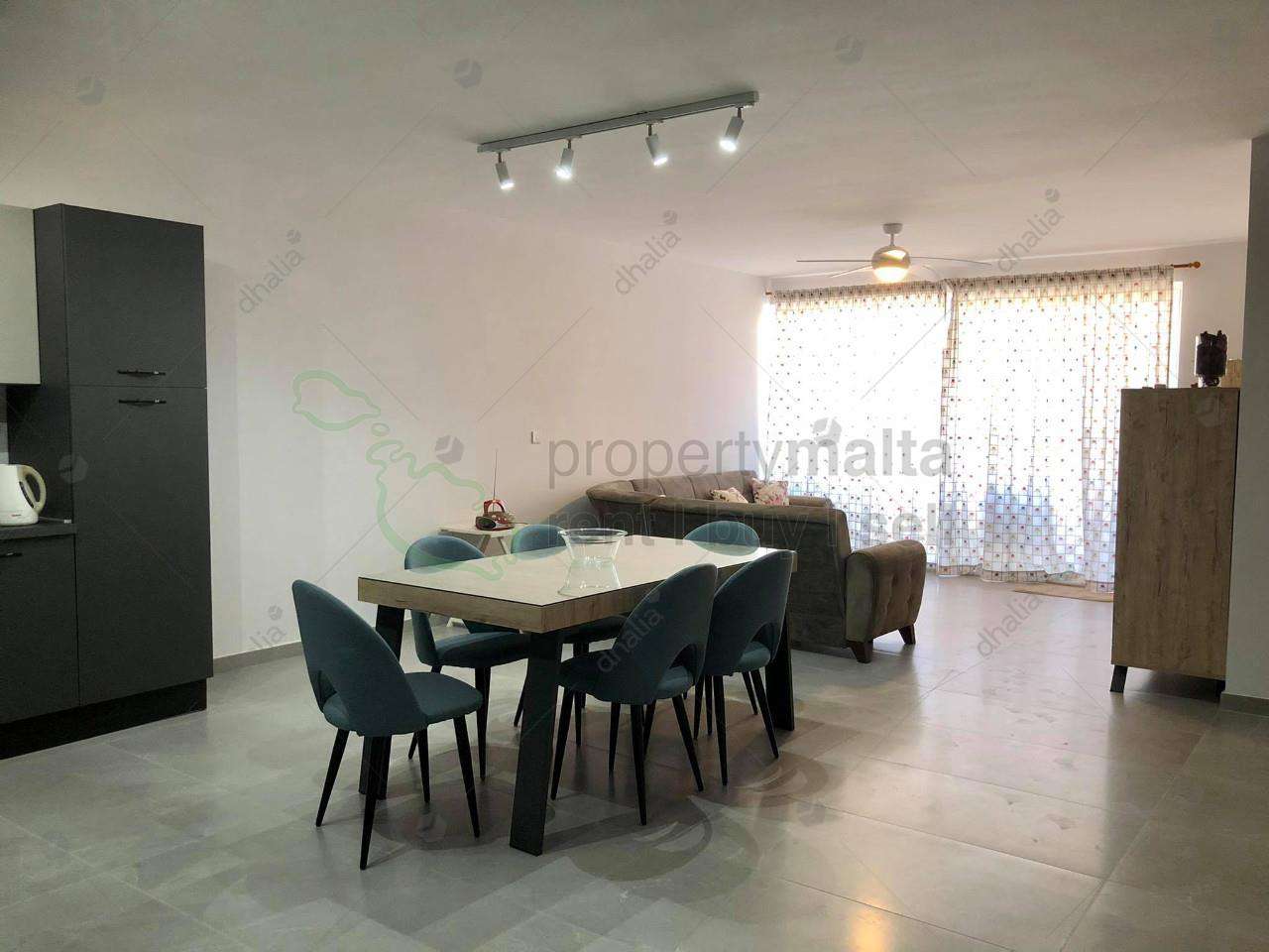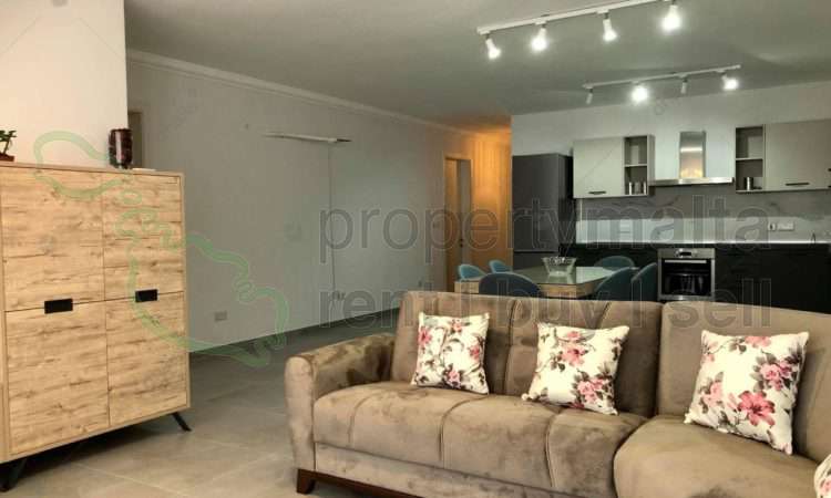 Luxurious, modern fully air-conditioned three-bedroom apartment in Qawra. The property consists of an open-plan kitchen/dining/living area leading to a front balcony, shower ensuite, main bathroom, three double bedrooms, and box room. Complementing this property there is a single lock-up garage.