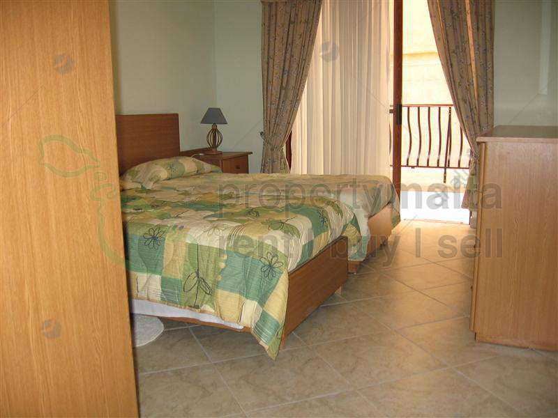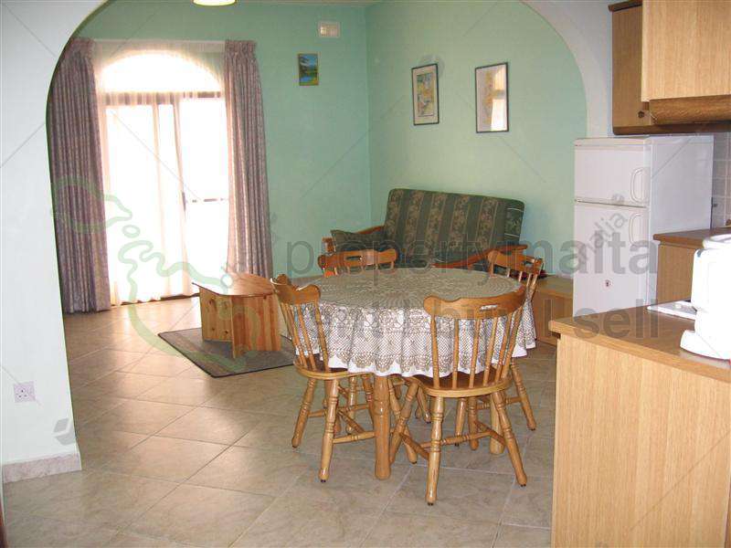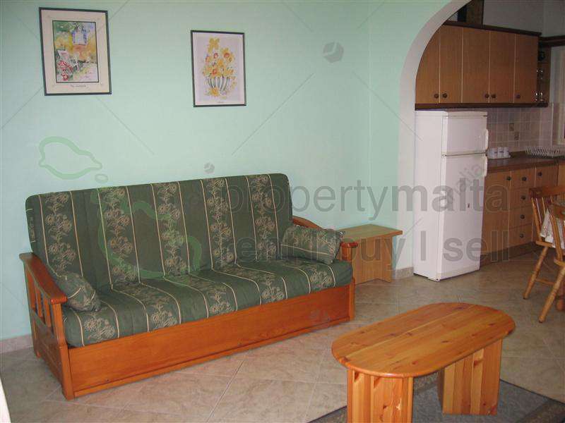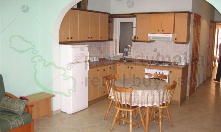 Nicely furnished elevated ground floor two-bedroom apartment in Qawra. The property consists of a combined kitchen/living/dining, spare toilet, bathroom, and a large yard.