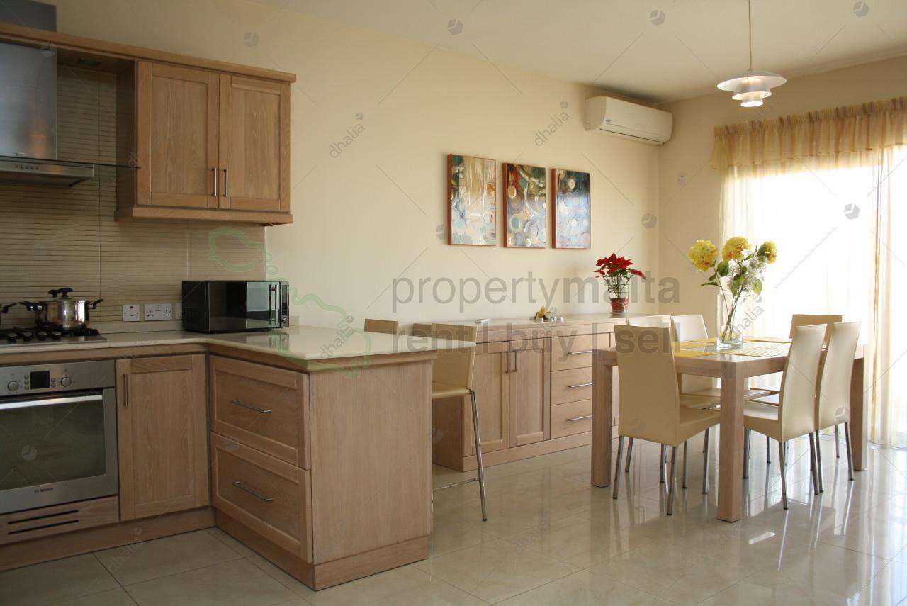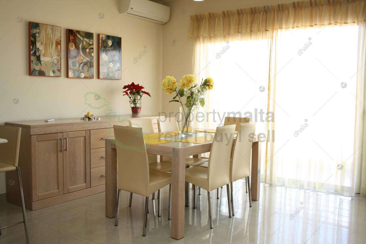 Modern, spacious, three-bedroom apartment, main ensuite, family bathroom, tastefully furnished and fully equipped with a nice open-plan kitchen/living/dining area leading onto a balcony. This apartment is also airconditioned and has a box room with a washing machine. Close to the seafront and all amenities.