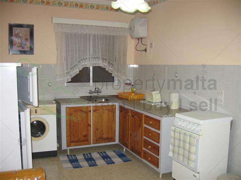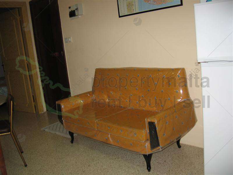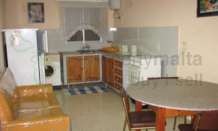 Spacious, two-bedroom apartment in Qawra. The property consists of an open-plan kitchen/living/dining area and a bathroom.