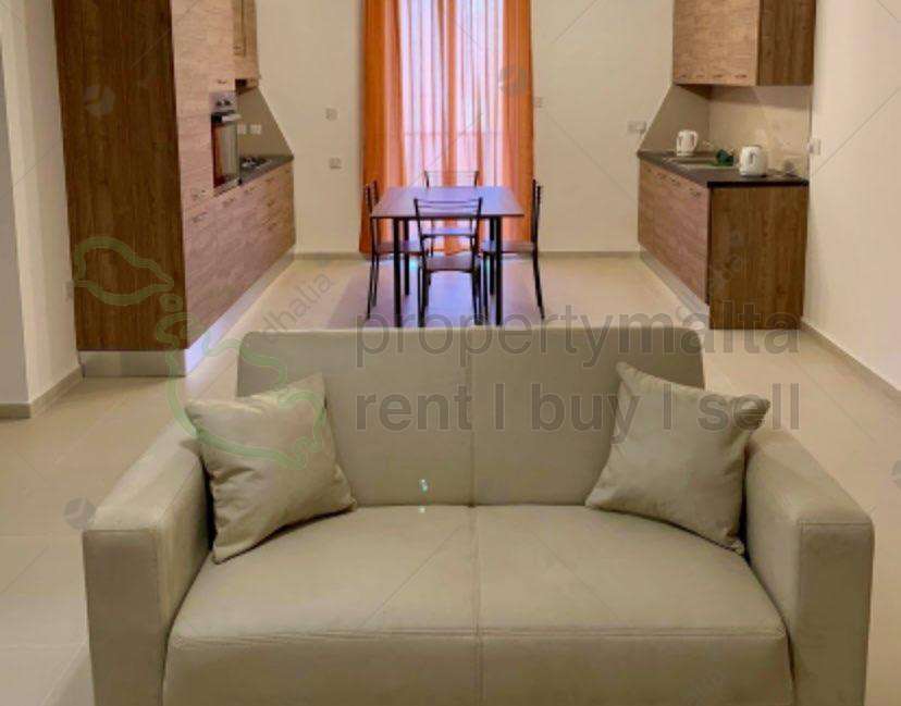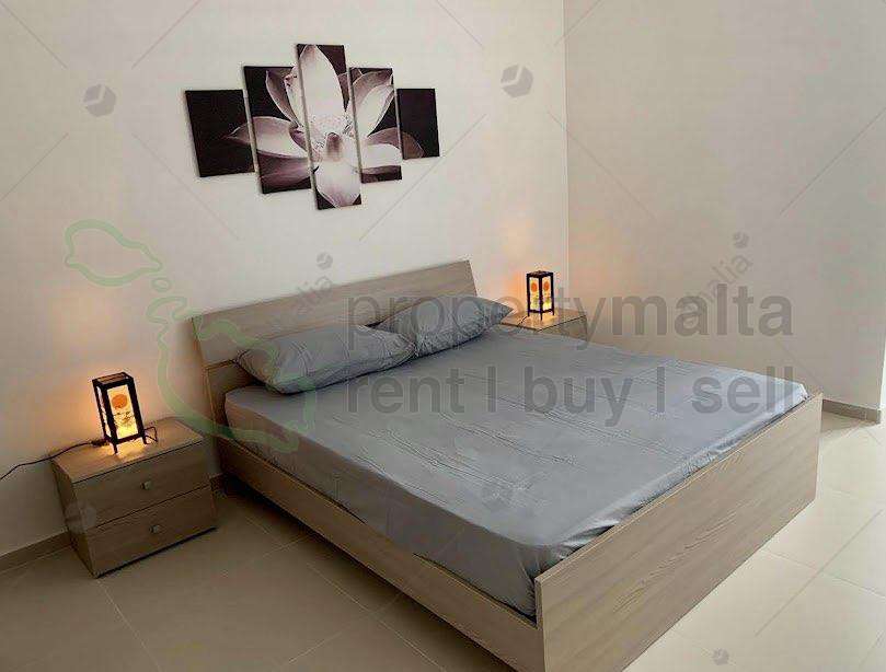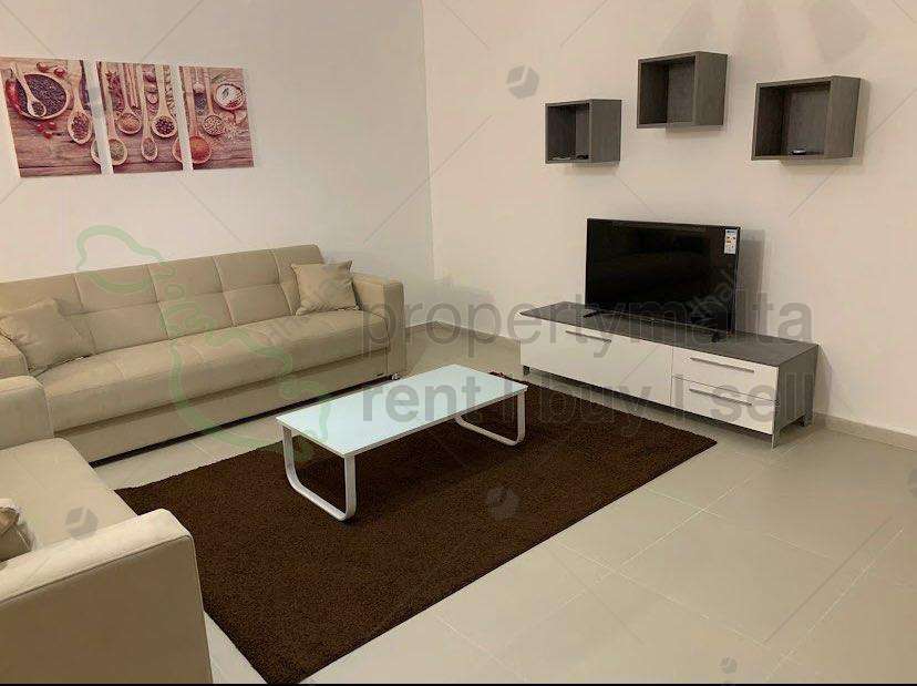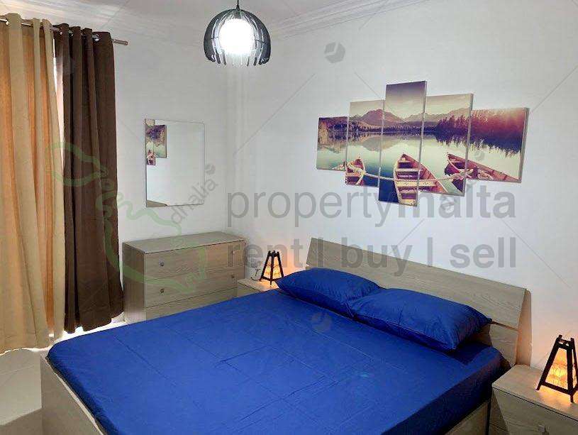 Modern, spacious two-bedroom air-conditioned apartment in Qawra. The property has an open-plan kitchen (equipped with a dishwasher), a dining/living area, a shower ensuite, a family bathroom, and a front/back balcony.