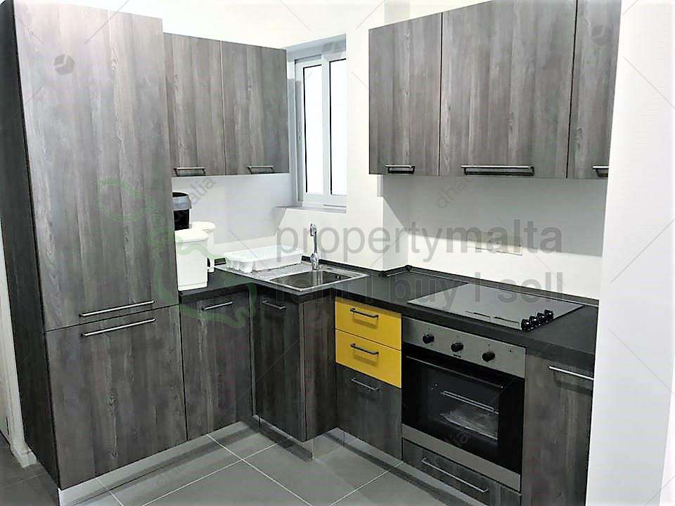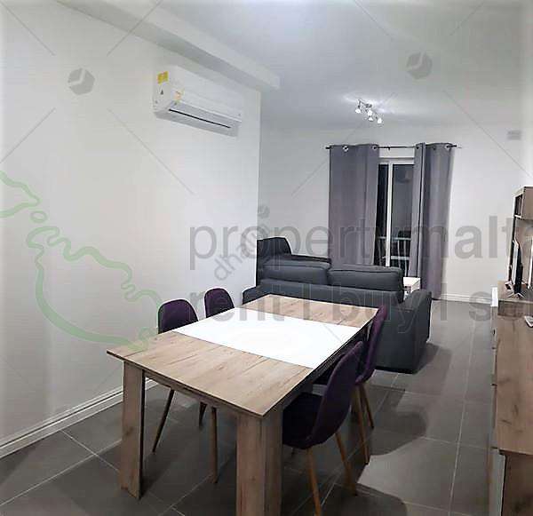 Modern first-floor, two-bedroom apartment in San Gwann situated within walking distance to all amenities. Property comprises an open-plan kitchen/living/dining area leading onto a front balcony, hallway, box room, main bathroom, master bedroom with ensuite facilities and another bedroom setup with a sofa bed which can easily be utilized as a second bedroom. Complementing this property is a spacious backyard accessible from the bedroom. Fully equipped and air conditioned throughout. Served with lift