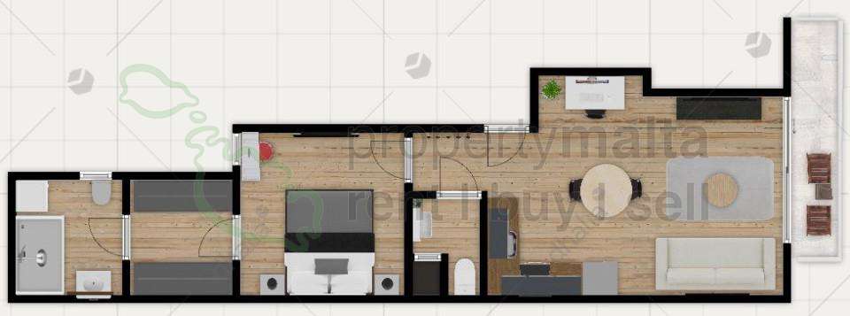 San Gwann, third-floor one-bedroom apartment, comprising an open-plan kitchen/living/dining area, guest bathroom, main bedroom with ensuite shower and a walk-in wardrobe. The property being sold is finished, excluding bathrooms and internal doors.