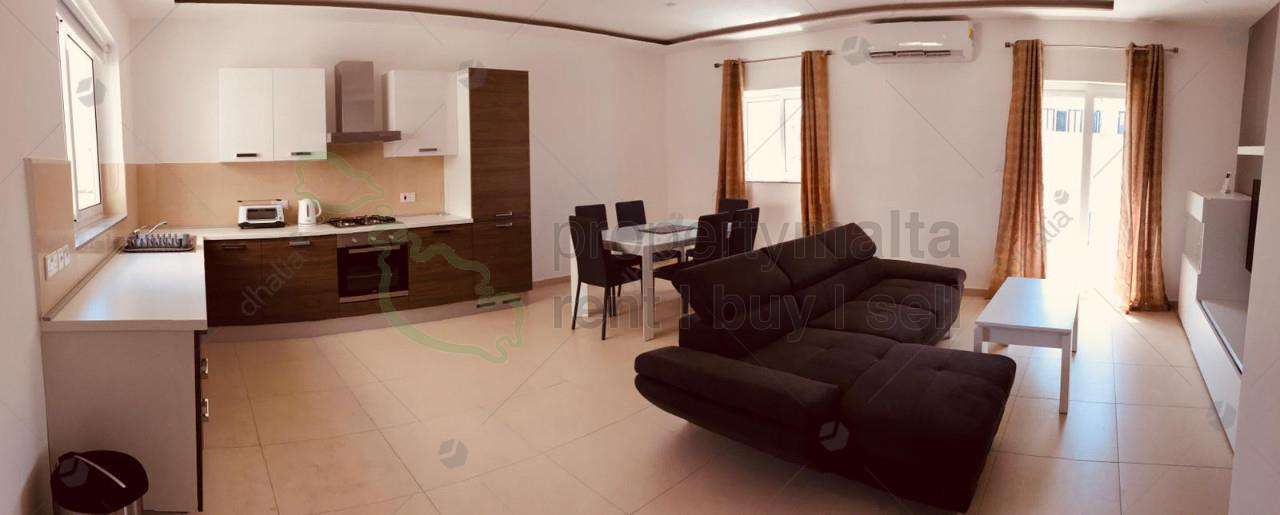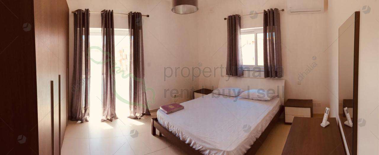 Highly-furnished, modern three-apartment situated in an excellent location close to all amenities. The layout consists of a large open-plan kitchen/dining/living area leading onto a front balcony enjoying daylight, three double bedrooms, main with a bathroom ensuite and a private balcony, second double bedroom also including private balcony and the main bathroom. Property is fully air-conditioned and is served with lift.