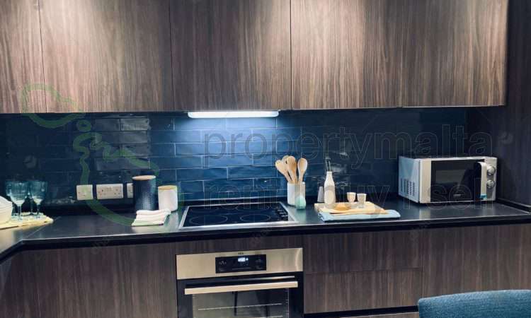 A three-bedroom apartment has an open-plan kitchen/living/dining room leading to a front balcony, three double bedrooms, a guest toilet, and a boxroom.