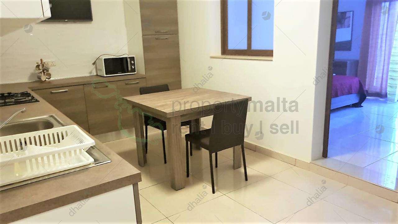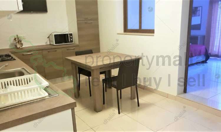 A compact one-bedroom apartment situated in the heart of San Gwann, close to all amenities. Property comprises an open-plan kitchenette/living/dining area and good-sized double bedroom with ensuite facilities. Complementing this property is a front balcony. Fully equipped and air conditioned.