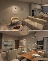 A studio apartment measuring 55sqm. The layout comprises an open plan kitchen/living/dining, front balcony, bedroom, boxroom and bathroom.
