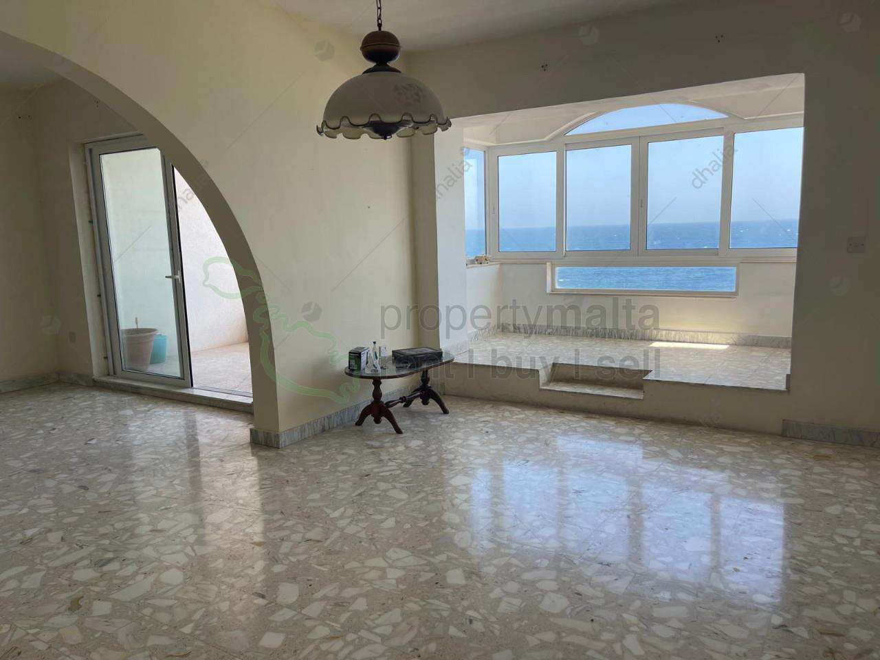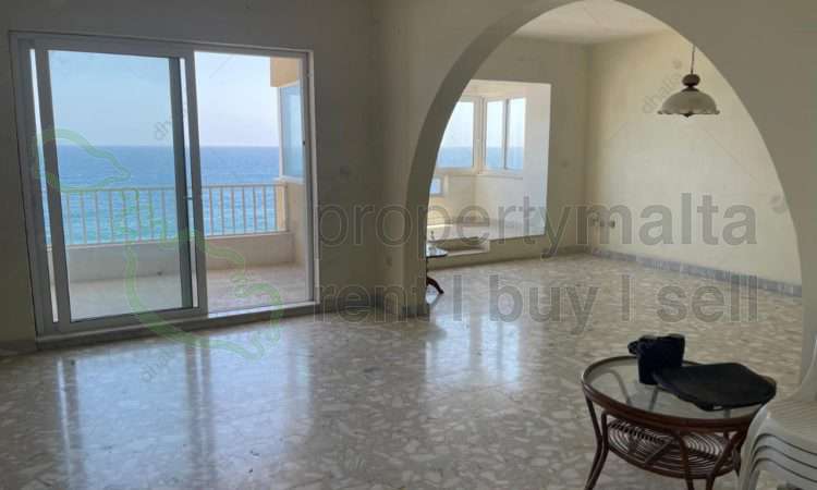 Sliema seafront spacious three bedroom apartment. It features a spacious combined dining and sitting area, a separate kitchen, a closed balcony, and an open balcony, together with a back balcony There are three double bedrooms (main with en suite facilities), a main bathroom, and a laundry room. Additionally, the property includes a lock-up garage located underlying the property.