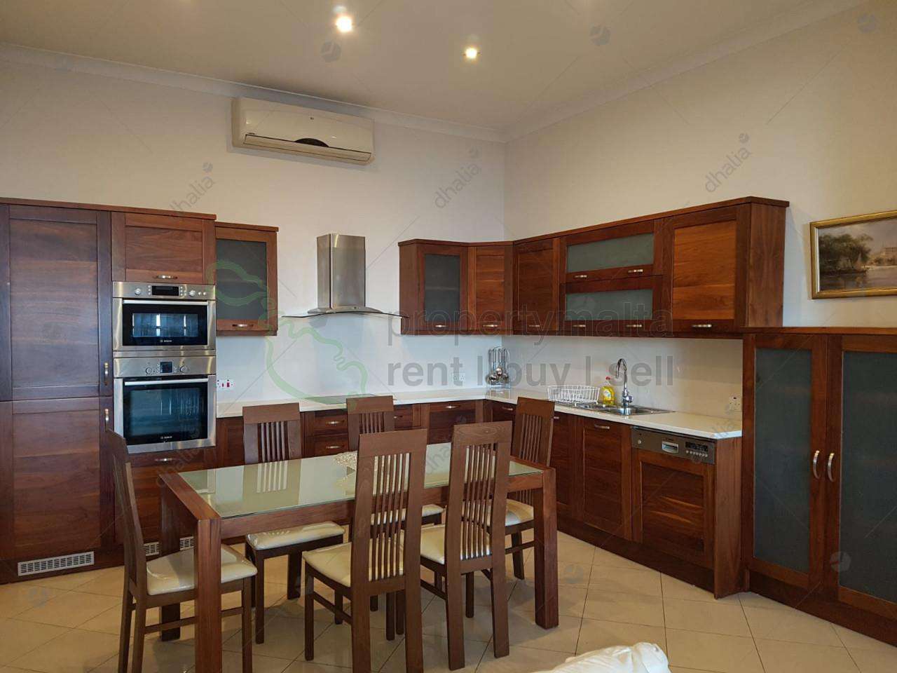 Tastefully furnished first floor seafront apartment situated in a most desirable part of Sliema close to all amenities. This very spacious apartment comprises of a kitchen/living/dining area complimented with a working wood fireplace, main bathroom and three bedrooms (main with shower ensuite). The price also includes a connected one car garage.