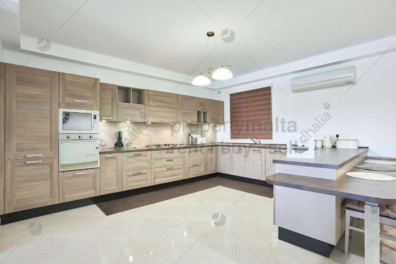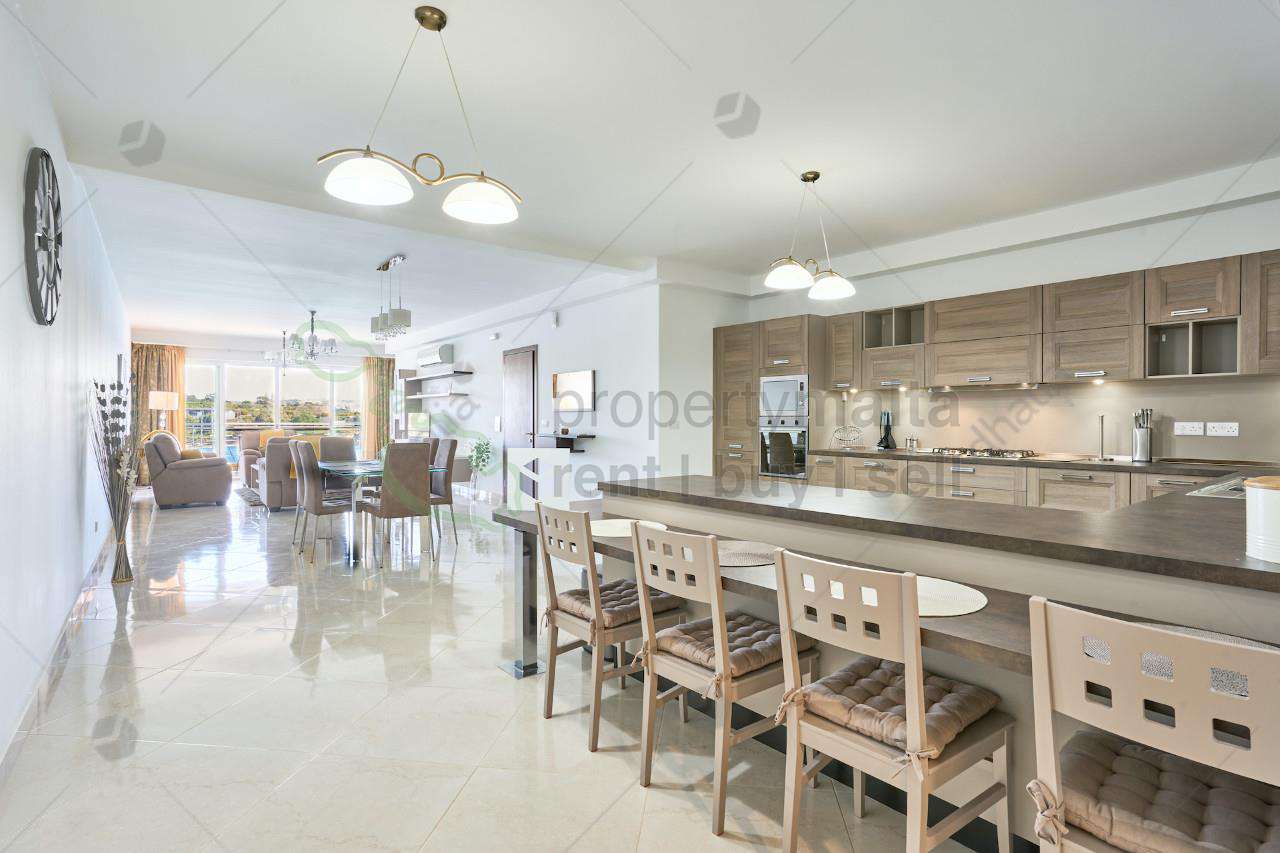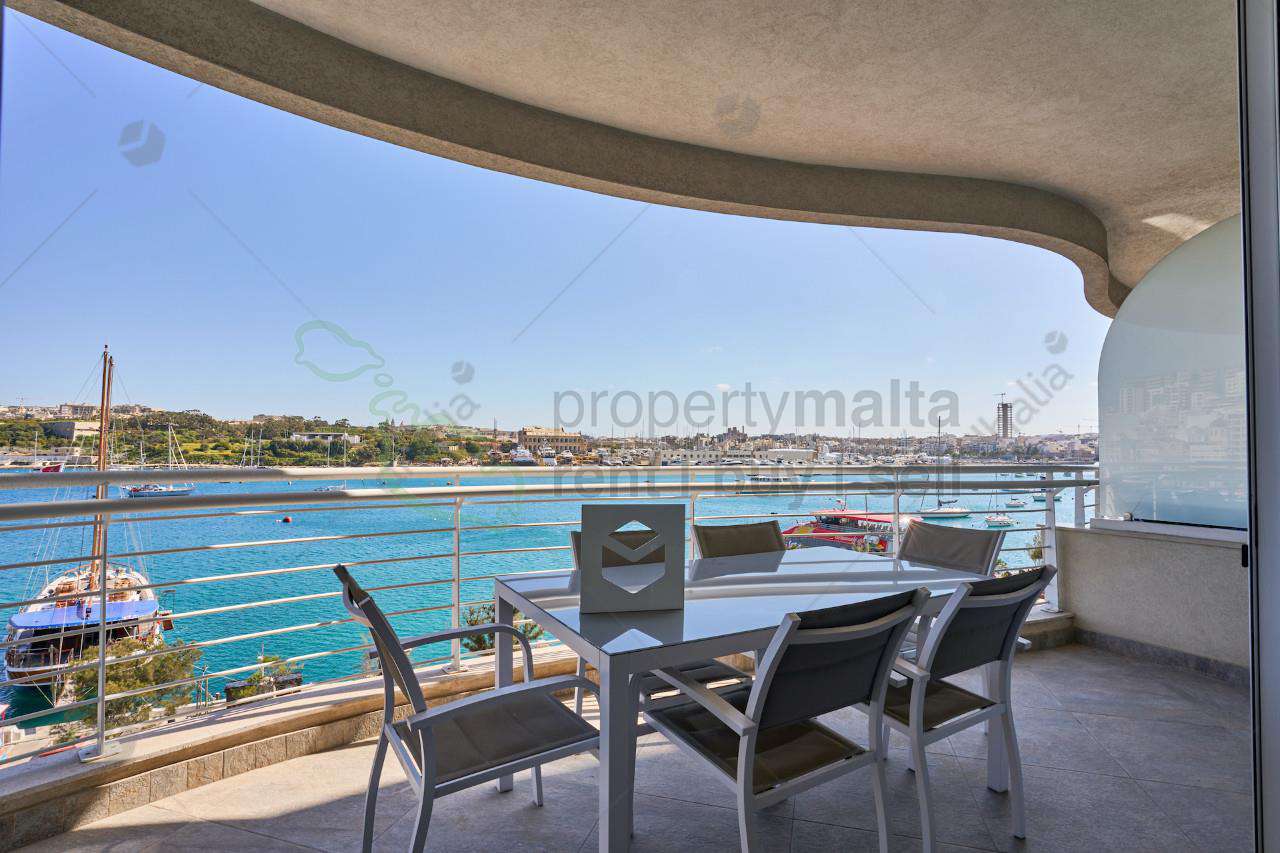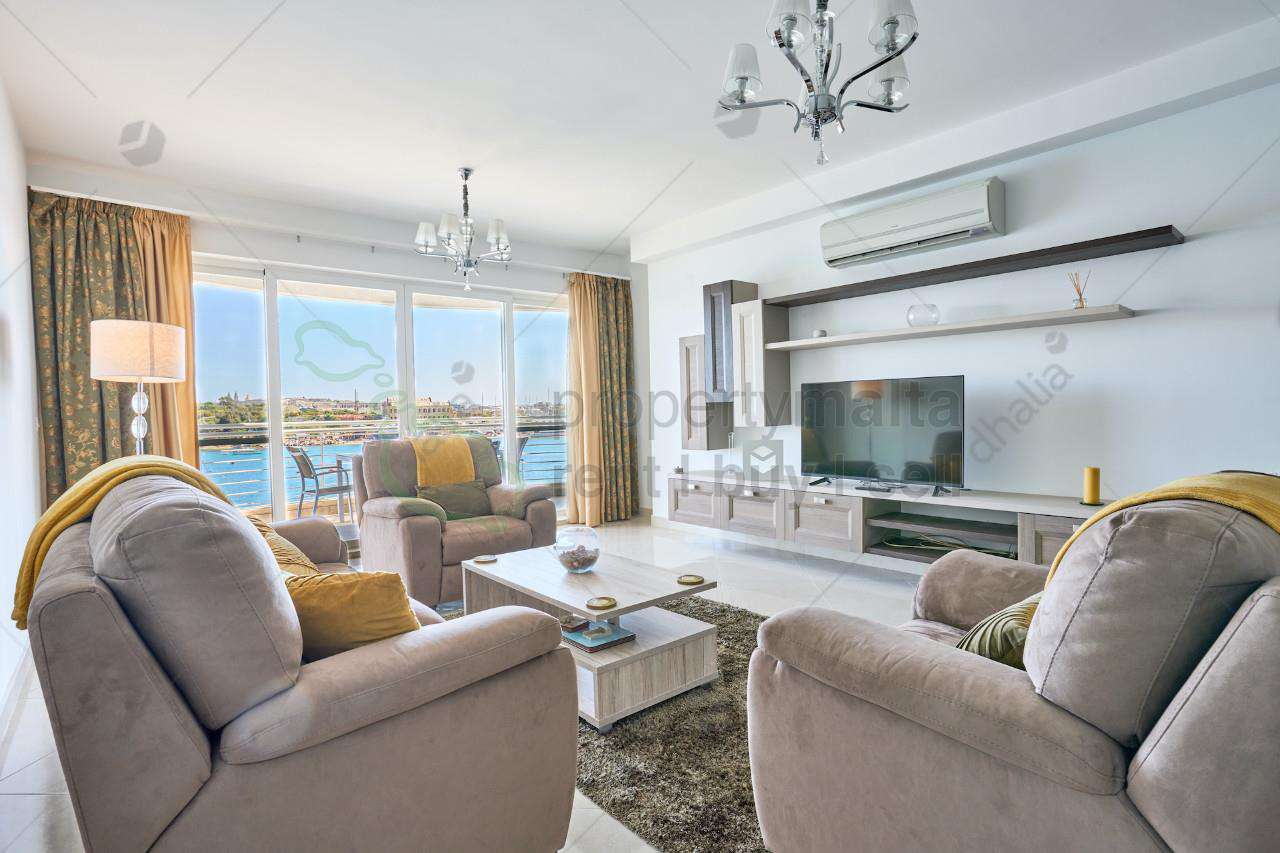 South-facing, superbly finished and furnished seafront apartment measures 308 square metres and is full of natural light. The layout comprises a large open-plan kitchen/living/dining area leading to a spacious front terrace overlooking the Sliema Harbour and the Valletta Bastions view. Moreover, the property has three double bedrooms (two of which have a walk-in wardrobe and all have ensuite facilities), the main bathroom, a laundry room with a drying area, a study, and a boxroom. An optional car space is available.