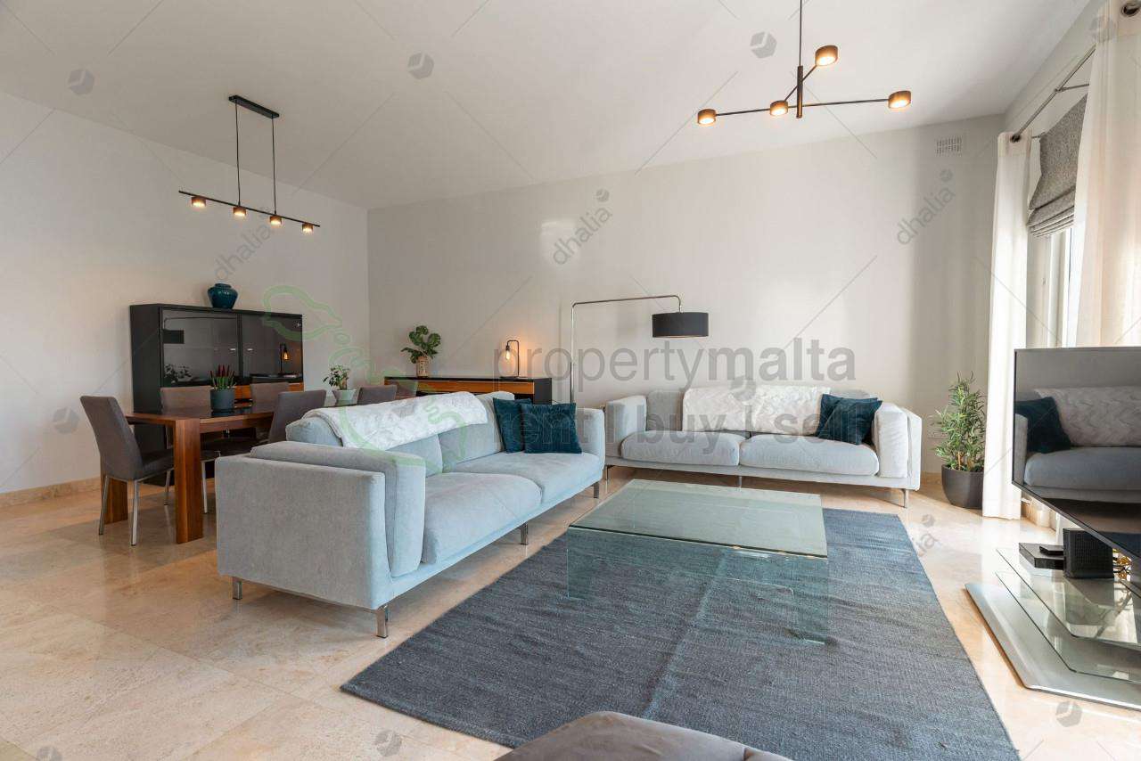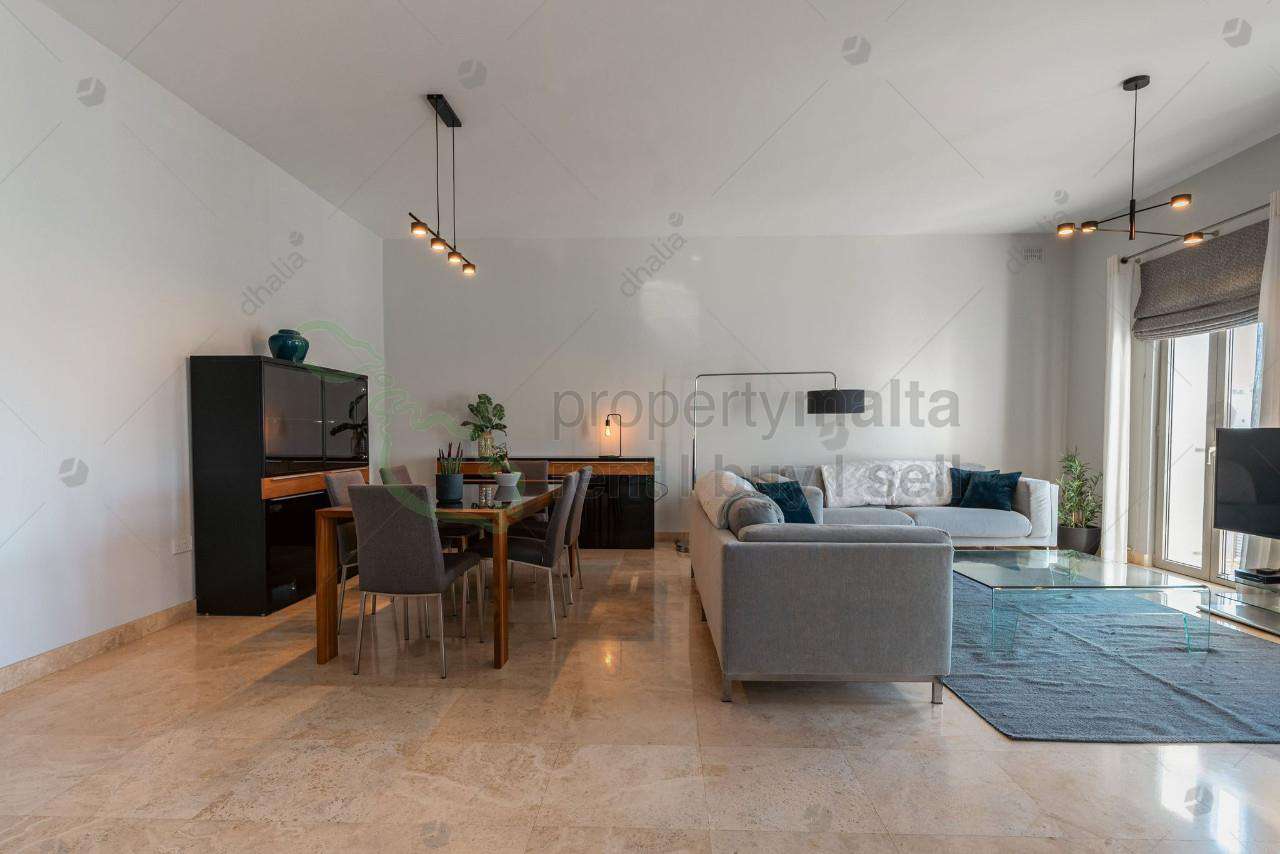 This bright and charming three-bedroom apartment with lovely sea views forms part of an exclusive residence at Tigne Point. The property comprises a spacious hallway that opens into a combined open-plan living, dining, and kitchen area. It features a good-sized balcony off the kitchen, where one can enjoy the views of Manoel Island. Being a corner apartment, one can view the Tigne Point piazza from all three bedrooms, especially from the additional well-sized back balcony off from the main bedroom. The main bedroom also has an en suite, in addition to the main bathroom in the hallway. There are also two utility rooms at one`s disposal. A car space is also included, and the possibility of an additional one car lock up garage.