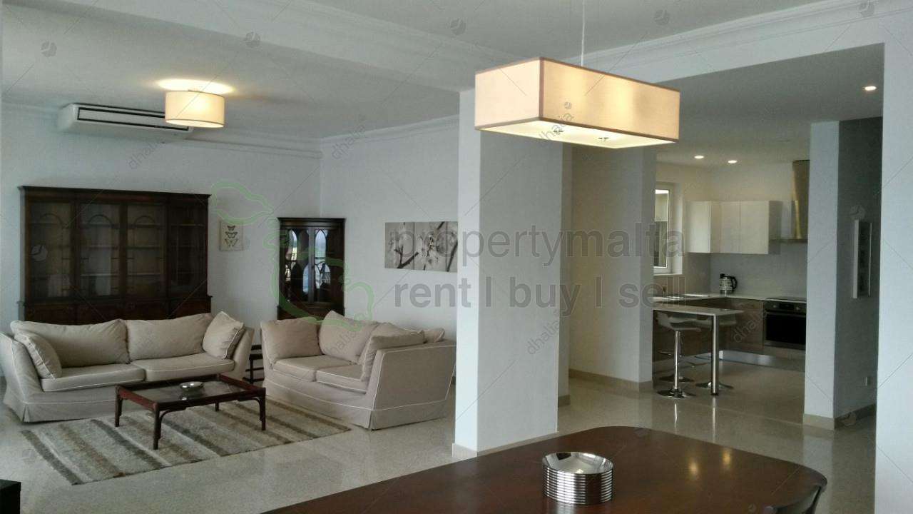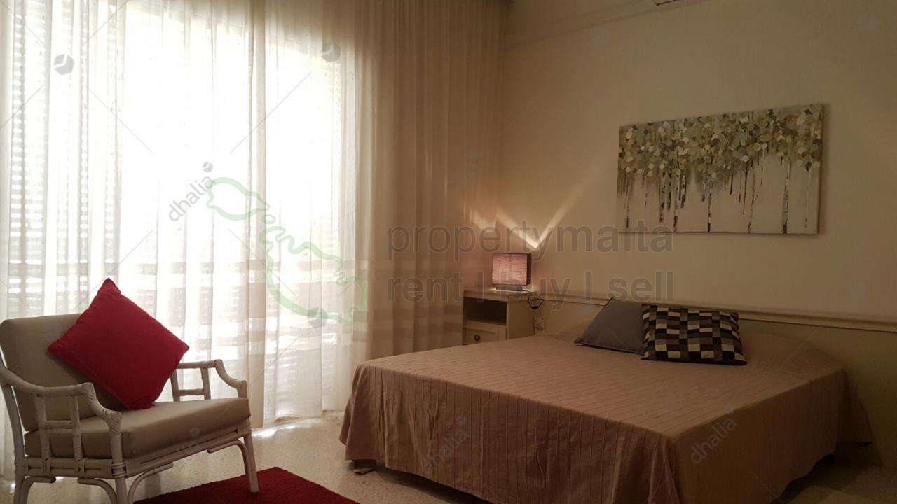 Large, bright and airy fourth, well-furnished and refurbished three-bedroom apartment set in a small block comprising a living room and separate dining room with two front balconies overlooking stunning sea views and a green park. A newly refurbished kitchen, breakfast area, three bathrooms (two of which are ensuite facilities), storage room and use of roof. Fully equipped and air-conditioned.