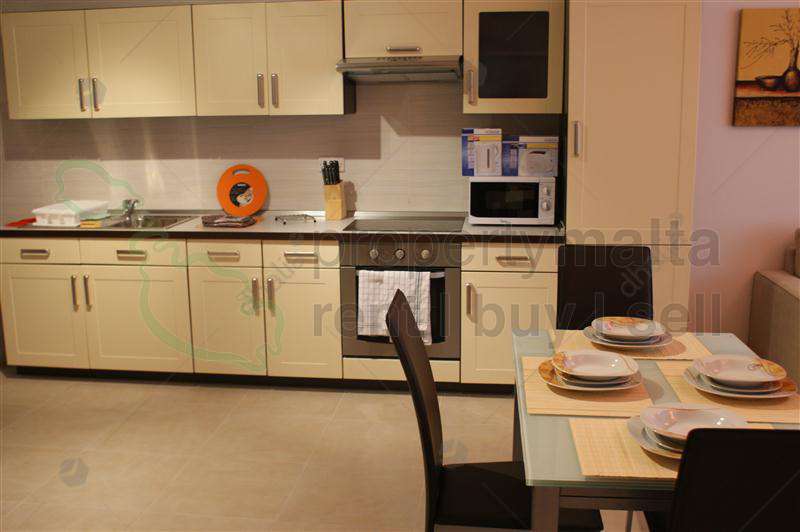Apartment situated just off the Sliema seafront, close to all amenities and shops. Layout comprises of a large open plan kitchen/living/dining area leading onto a wide balcony, two bedrooms, main with ensuite facilities and a main bathroom. Property is fully equipped and fully air conditioned. Optional one car garage at an additional cost.