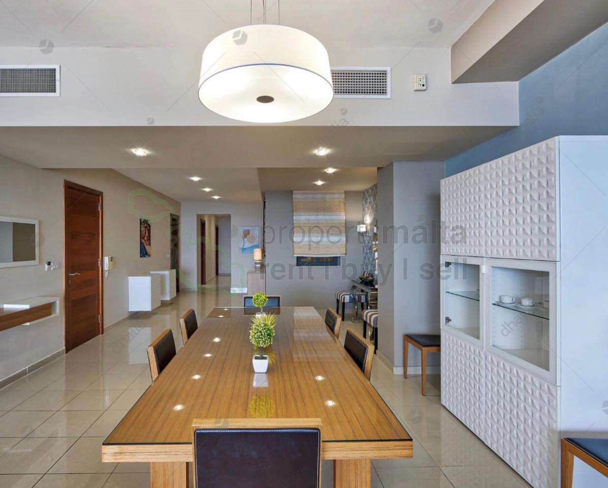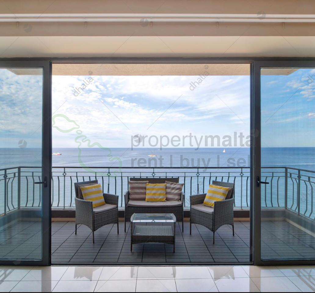 An immaculate seafront apartment ideally located in Sliema close to all amenities. Layout is in the form of an open plan kitchen/living/dining area leading onto a front terrace, three double bedrooms main with shower ensuite, main bathroom, back terrace and a laundry room. Fully equipped. Complementing this property is also a car space.