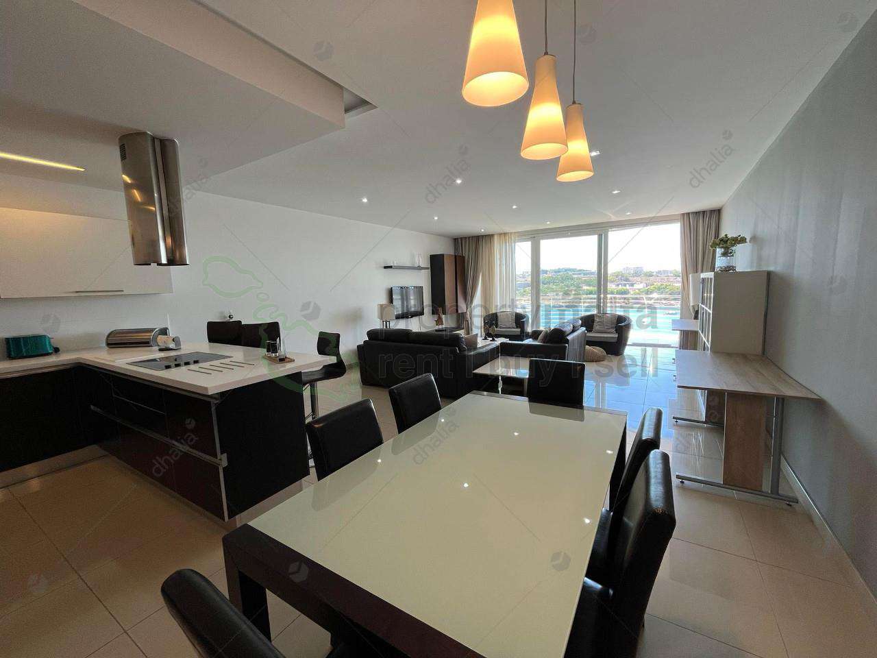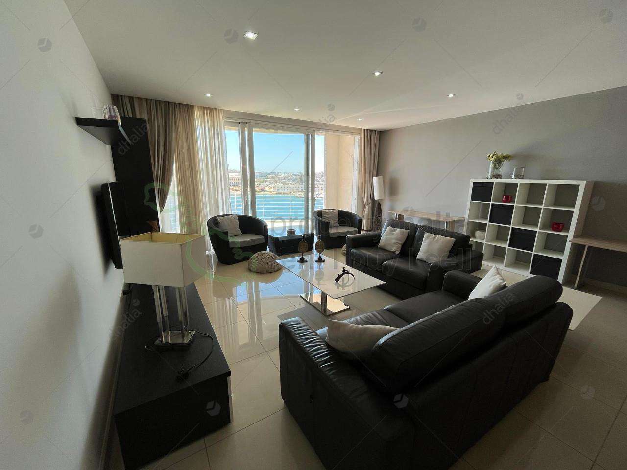 Highly finished 6th floor seafront apartment furnished through out with ultra modern furniture .Property enjoys spectacular views of Valletta,Manoel island sliem front and Mdina .Accommodation comprises a hall, large open plan living/dining/kitchen,laundry room,main bathroom,three double bedrooms,shower en suite and a car space is also included.Property is fully equipped and air-conditioned with all modern day luxuries.
