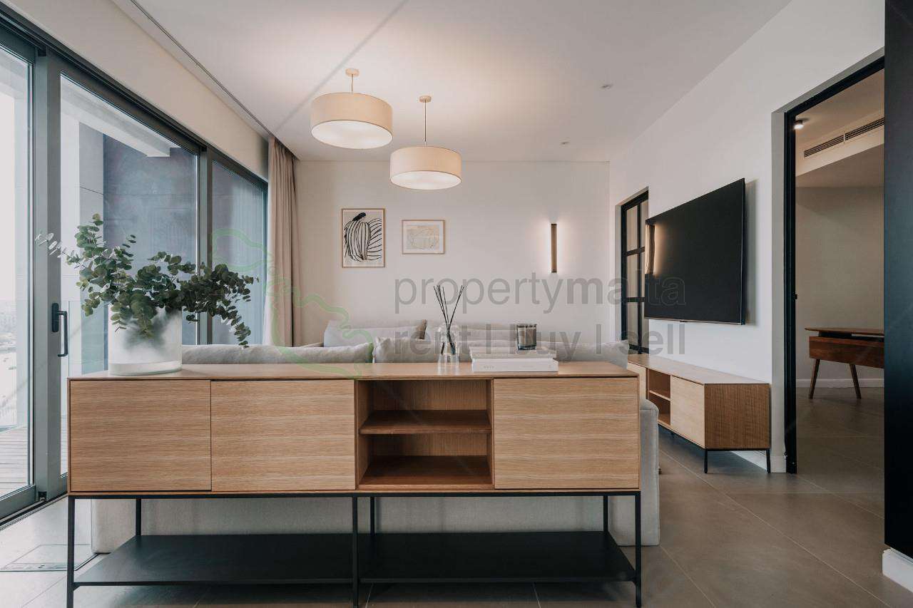 Fully furnished south-facing double-width apartment having unobstructed views of Valletta and Manoel Island. Layout comprises of a large entrance hall, lounge/dining onto a large front terrace, and a separate kitchen. Three bedrooms, the main has a walk-in wardrobe and ensuite. Main bathroom, guest toilet, drying area. This apartment is finished in a contemporary style, creating an innovative design between architectural and interior design. Fully equipped to high standards with full air conditioning and double glazing throughout the whole apartment.