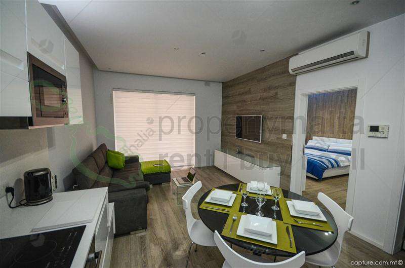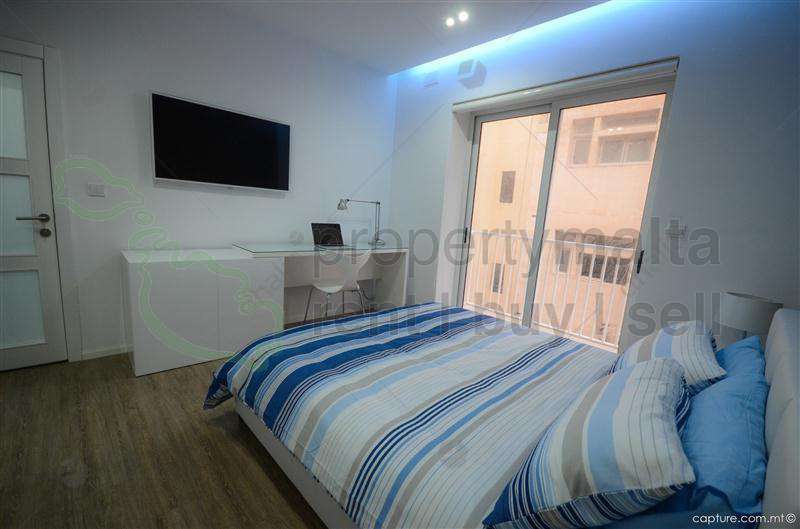 New on the market is this luxuriously furnished apartment set in the heart of Sliema. property comprises of a kitchen/living/dining leading onto a terrace, main bathroom and main bedroom, leading onto another terrace. Property is fully equipped with modern amenities and includes an alarm, safe deposit box, telephone, satellite TV, 46″ LED TV in bedroom.