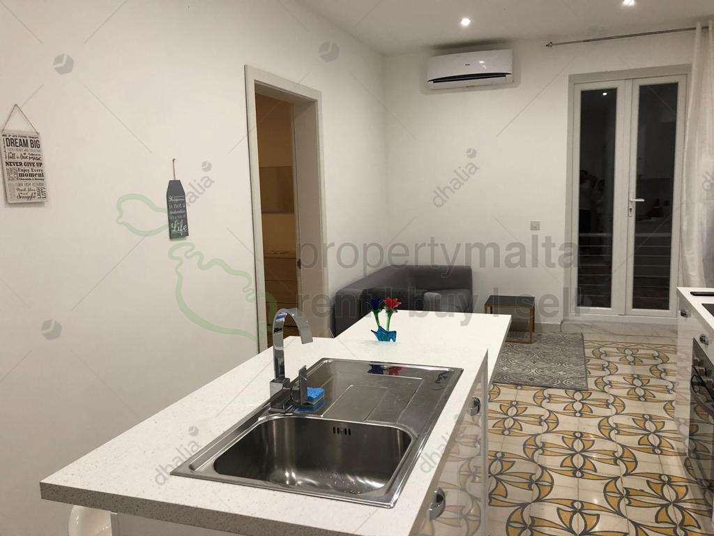 Located in the heart of Sliema is this two-bedroom, luxuriously finished and furnished apartment. Layout comprises an open-plan kitchen/living/dining area, fully equipped with smart TV, dishwasher, internet and double glazing throughout, main double bedroom, single bedroom and a bathroom. Complementing this property is a traditional Maltese balcony and also an open balcony.
