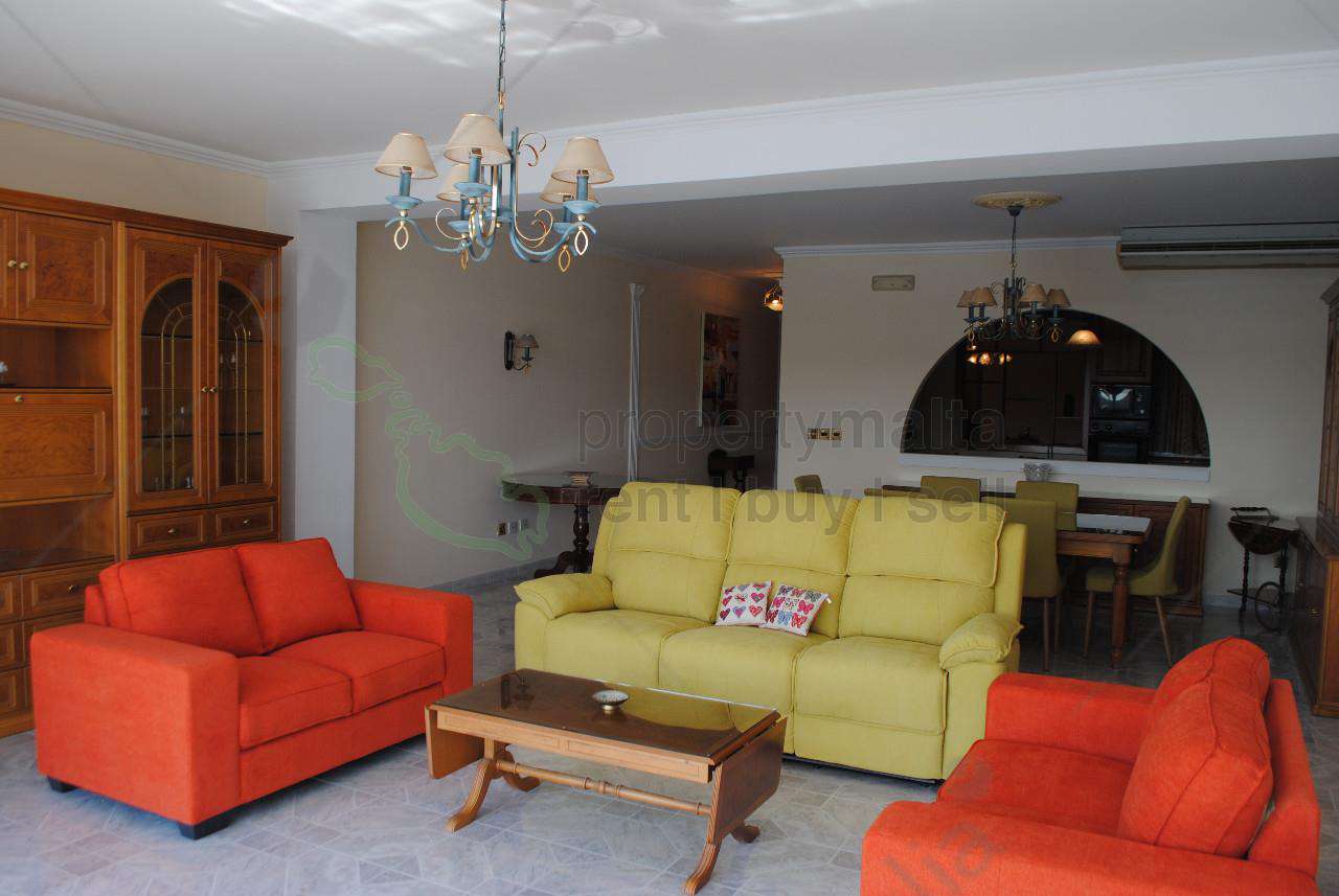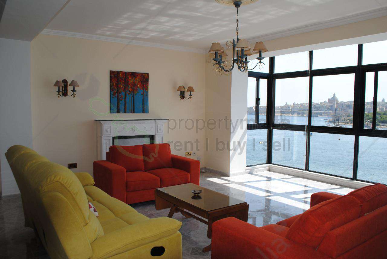 Extremely spacious and well finished seafront apartment. Layout consists of an entrance hall, main bedroom with ensuite, twin bedroom, bathroom, laundry room,study, large separate kitchen and large open plan dining/living with spectacular views of Manoel Island, Optional car space available.