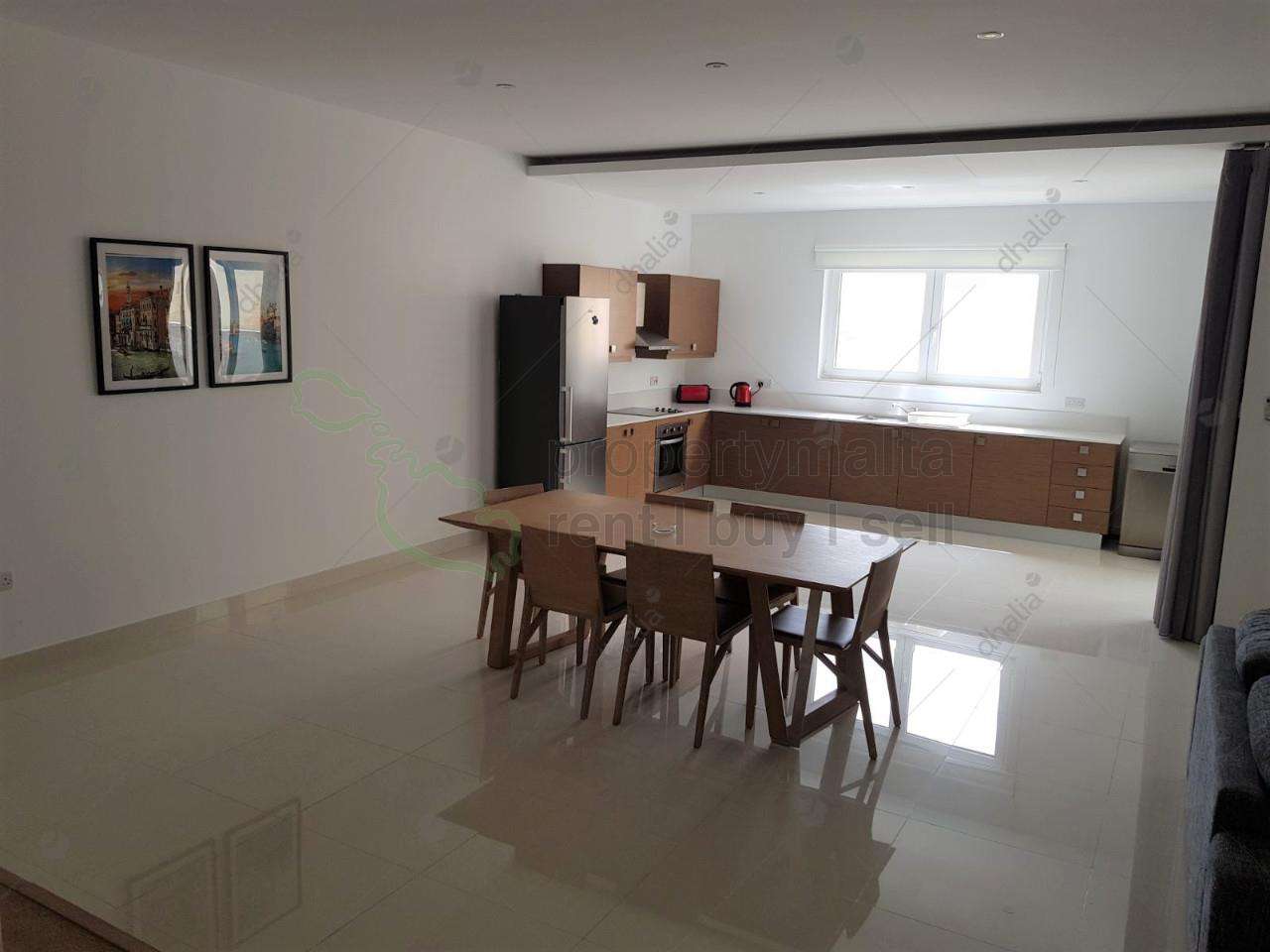 Modern fully furnished apartment located just round the corner from Tigne Point, Sliema. Layout comprises a kitchen/living/dining area leading to a front balcony, three double bedrooms main with ensuite, balcony and a back terrace. Property equipped with all modern appliances.