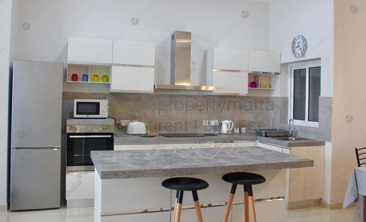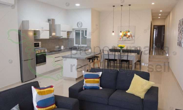 Located in a quiet residential area, in a cul-de-sac sac minutes away from Balluta and Spinola Bay, and close to all amenities is this luxuriously finished and completely furnished apartment. Property enjoys a spacious accommodation and plenty of natural light, comprising an open plan kitchen/living/dining, two double bedrooms with own balconies and two bathrooms one of which is an ensuite to the master bedroom.
