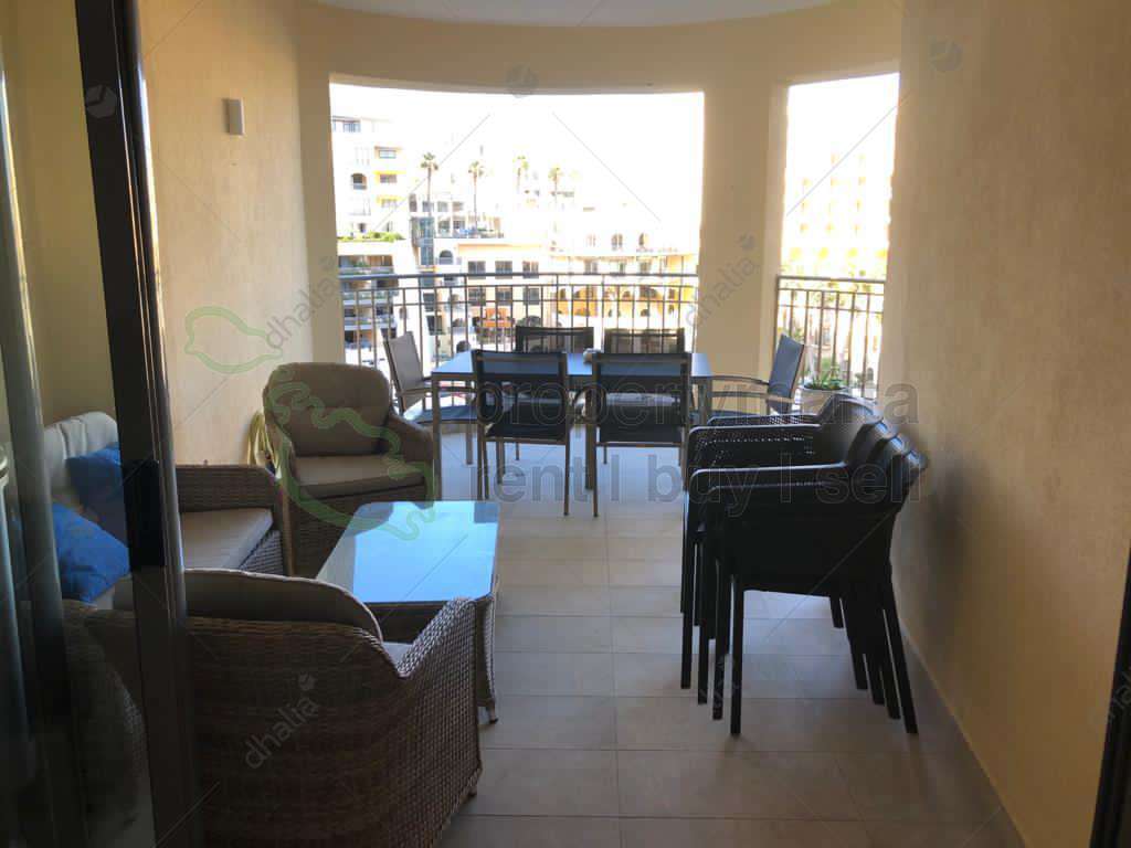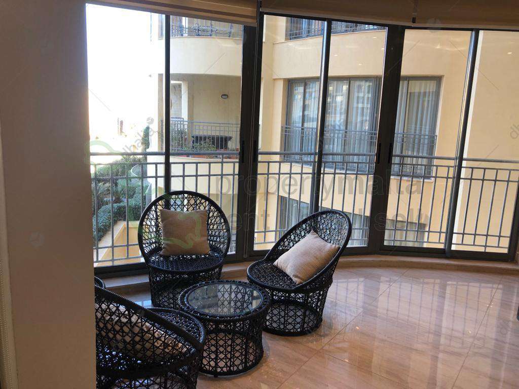 An exceptional opportunity to live in one of the prestigious area of St.Julians. This fully furnished and luxuriously finished apartment boasting beautiful sea and marina views, comprising of an open-plan kitchen/living/dining area leading onto a front terrace, having two double bedrooms with shower and bath ensuite, dressing room, spare toilet, box room, laundry room, and a study room also enjoying a balcony.