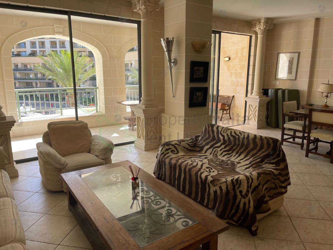 Located on the second floor, this stunning apartment in Portomaso offers breathtaking views of the marina. The property boasts a large open plan sitting and dining area that leads out to a 20 square metre terrace. It also includes a separate kitchen, two double bedrooms – the master with an en suite bathroom and walk-in wardrobe, and the second bedroom with its own en suite facilities and a guest toilet.