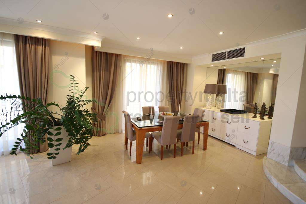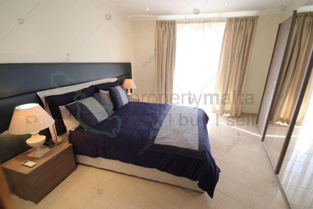 Luxuriously designed, three-bedroom apartment situated in Portomaso, lavishly finished enjoying Marina views. Property is made up of a spacious hallway, which leads to an open-plan lounge/dining with lovely round terrace. Fully fitted and equipped kitchen with its own terrace enjoying back views of St Julian`s, three double bedrooms main with ensuite facilities, study room, spare toilet, main bathroom and two-car spaces are included. Finished to excellent standards, one must view to appreciate the quality. Property is also fully equipped with all modern day luxuries.