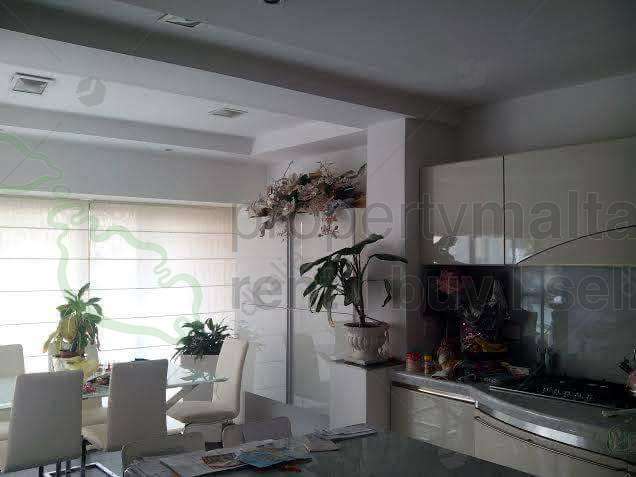 Spacious, square layout apartment situated in a quiet residential area of St Julian`s. The property comes in the form of a hall, living room leading onto a well-sized terrace enjoying open and distant sea views, fitted kitchen/dining area, three double bedrooms main with ensuite, main bathroom, laundry room and two back balconies. Included is an underlying one-car lock-up garage. Highly recommended.