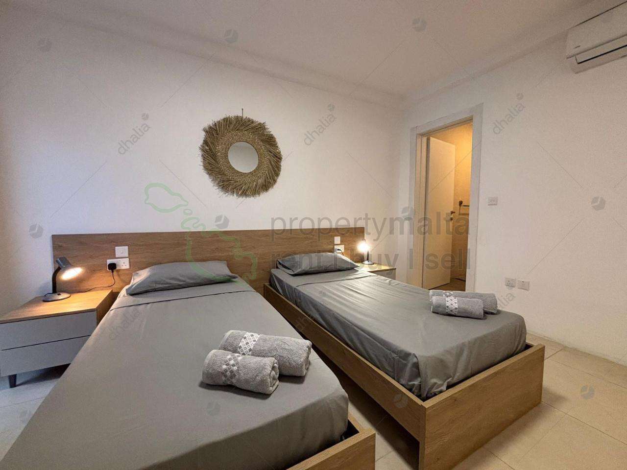 St.Julians close to Mercury towers, is this third-floor fully furnished, two-bedroom apartment. Property comprises of an open-plan kitchen/living/dining area leading to a front balcony, main bathroom, two bedrooms main with ensuite shower and two back balconies.