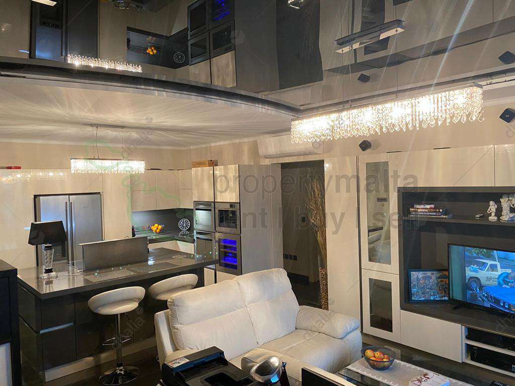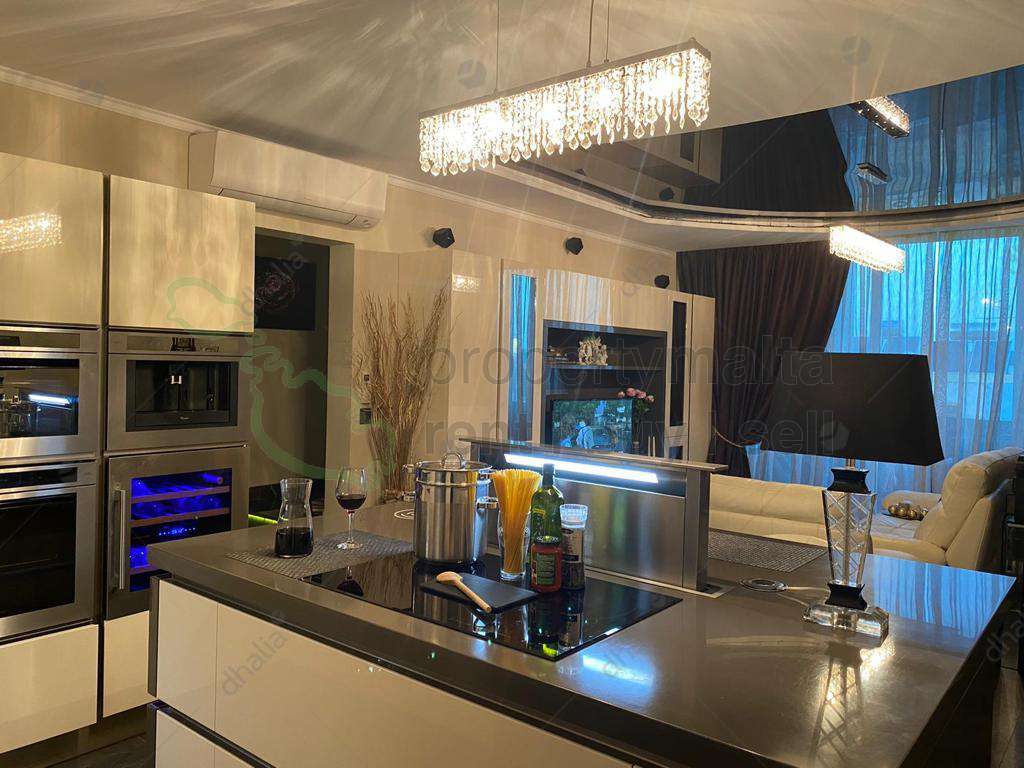 Located on high grounds, in an established residential area is this designer-finished and furnished, third-floor apartment. This property enjoys a practical, squarish layout having an entrance hall, a large open-plan kitchen/living/dining area (47 square metres), which leads onto a lovely ten square metre balcony enjoying superb views, three double bedrooms all with ensuite bathroom, and a separate guest bathroom. A two-car underlying garage is optional at €59,000. A number of high-end extras further complement this excellent property.