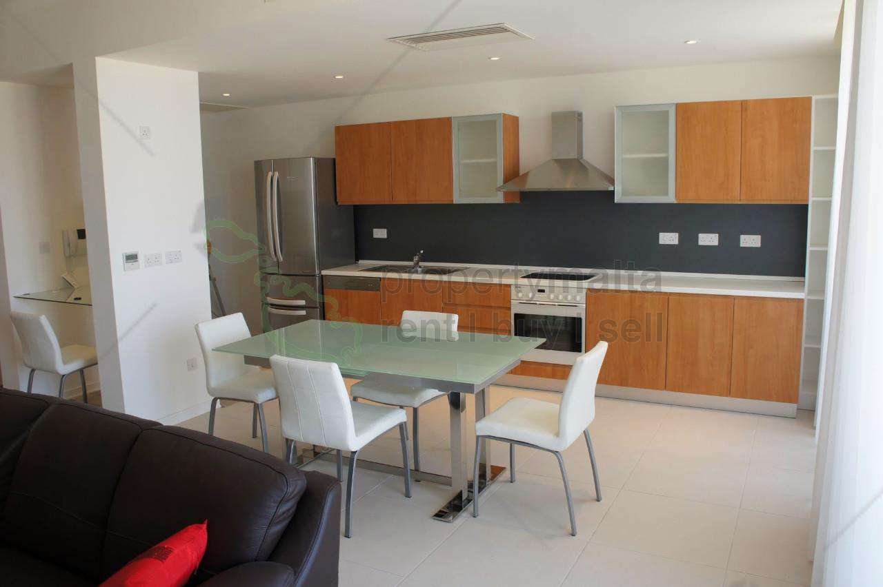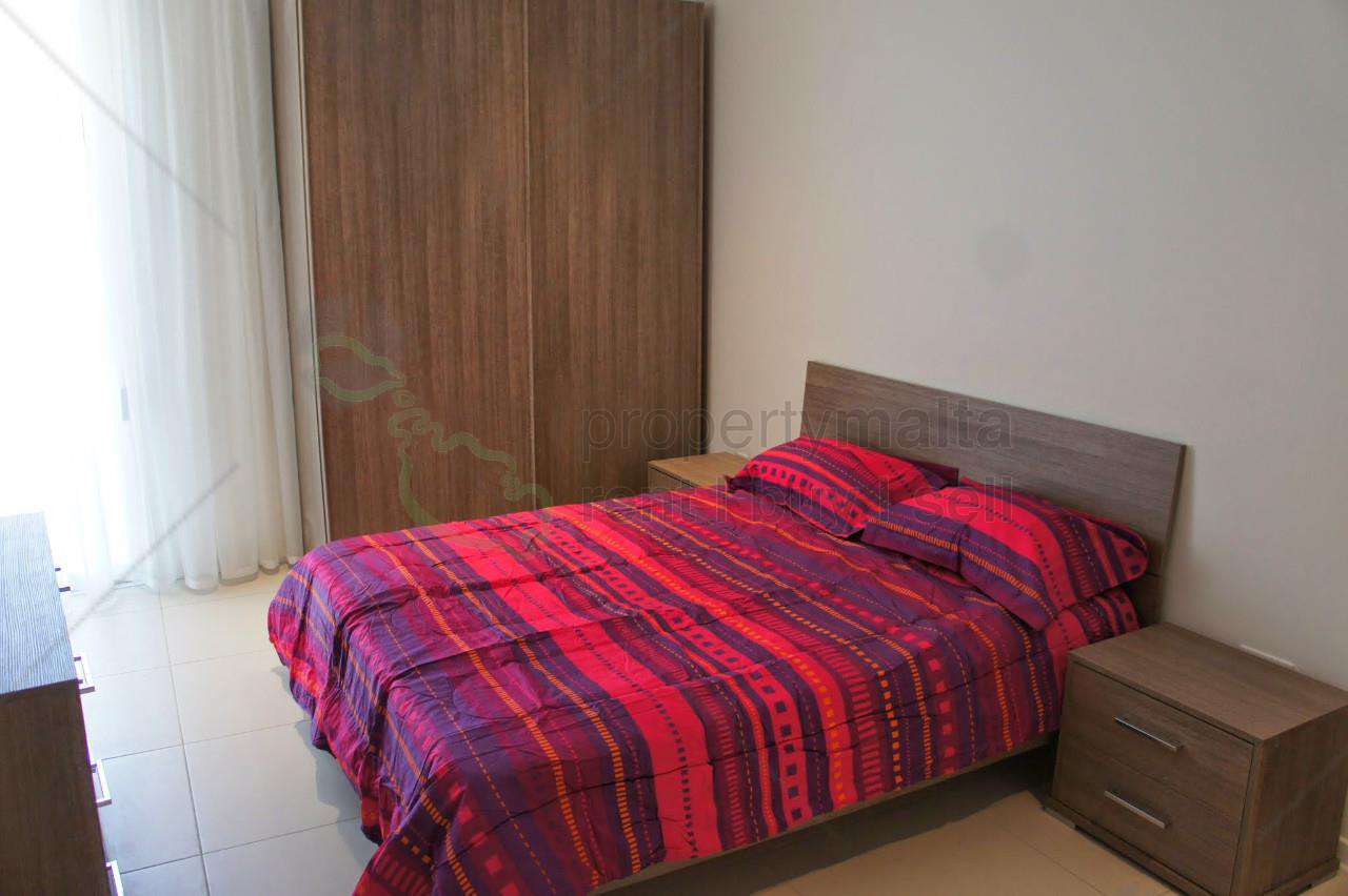 Third floor apartment situated in the heart of St Julians comprising two bedrooms, two bathrooms (one ensuite) sitting/dining/kitchen area, back veranda with valley/sea views and two balconies. Furnished and finished to high specs including air conditioning, double glazing throughout, LED energy saving lighting etc… Lock-up two car garage also included.