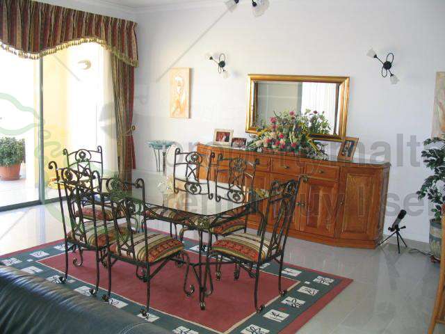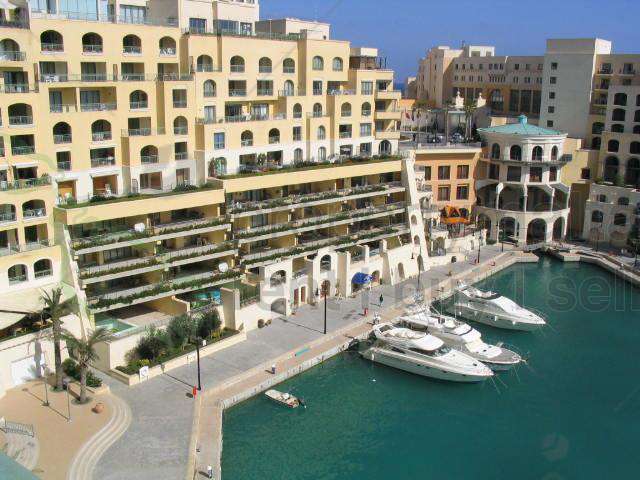 Luxuriously and classically finished and furnished 3 bedroom apartment in one of the most prestigious blocks on the island. Property enjoys both marina and open sea views from its larger than usual front terrace. Layout comprises a large entrance hall, a large and airy open plan, fully equipped kitchen/ living/ dining, guest toilet, shower room, laundry/ box room and 3 double bedrooms(main with bathroom ensuite). Main bedroom also has a small terrace facing overlooking the entrance to Portomaso. Extras include airconditioning throughout, microwave, washing machine, tumble dryer, dishwasher, 2 televisions, telephone, a garage space and use of the Hilton swimming pool. Highly recommended.